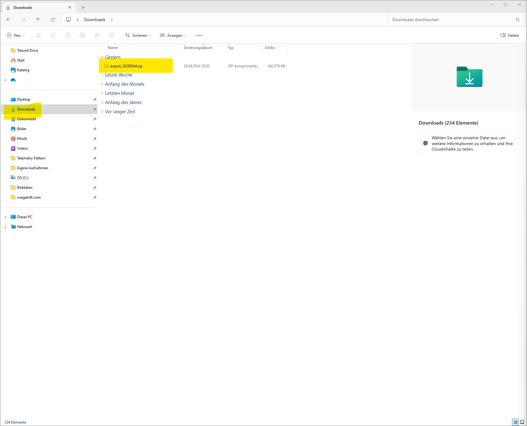 - Doppelklick auf die .zip-Datei, damit der Inhalt zu sehen ist.