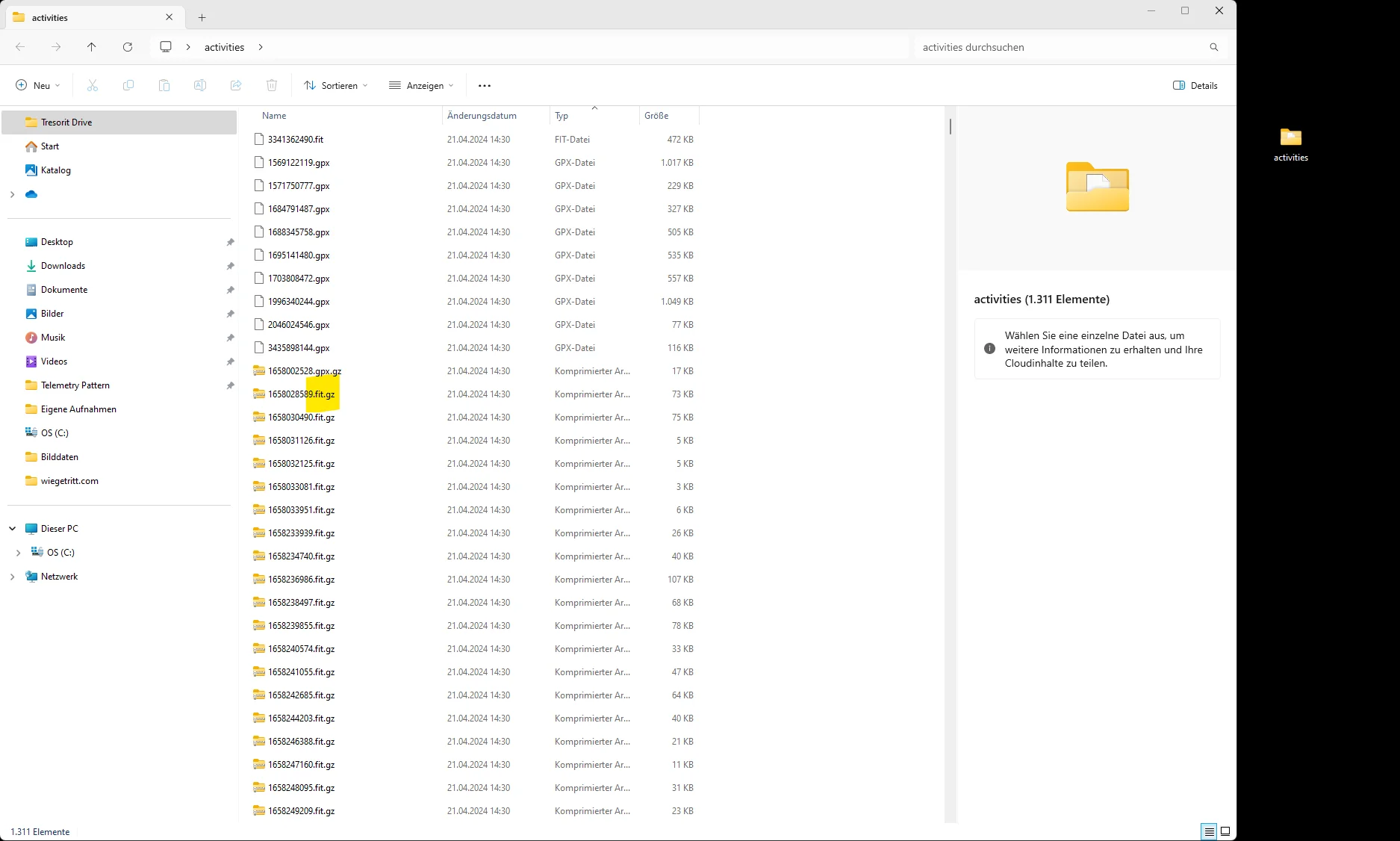 - Im Ordner activities sind die einzelnen Aktivitäten im .fit Format. Wer früher aus anderen Plattformen Aktivitäten importiert hat, findet hier auch .gpx und .tcx Dateien.