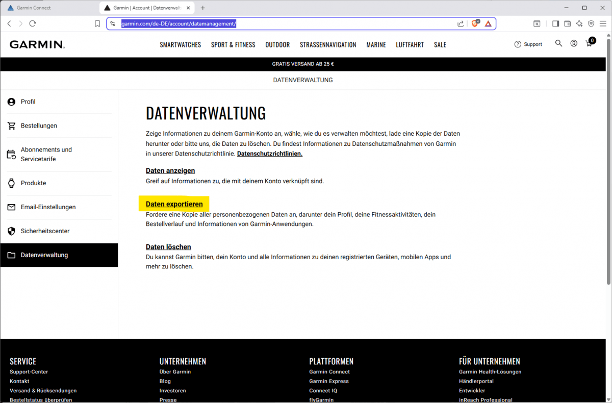 https://www.garmin.com/de-DE/privacy/connect/ öffnen