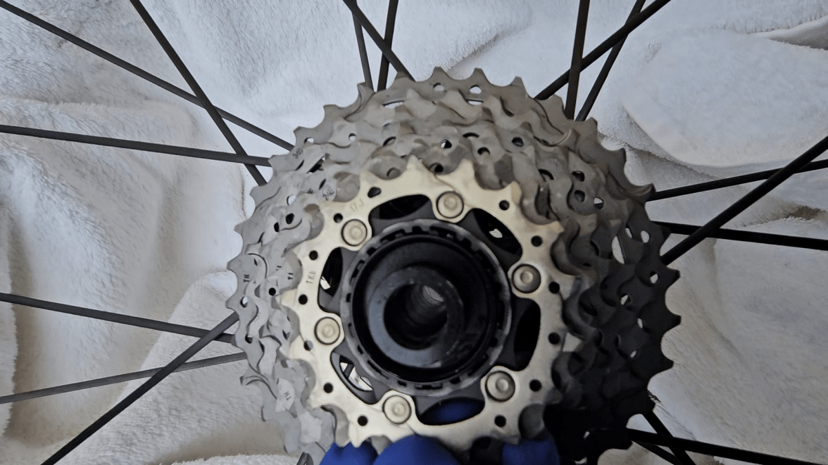 Wenn alle Teile trocken und sauber sind, kann die Kassette wieder an das Laufrad montiert werden.