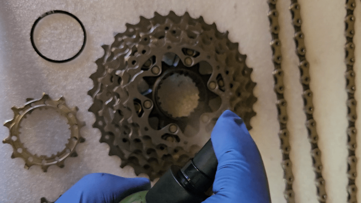 Die Ritzel auslegen und mit Kettenreiniger saubermachen.