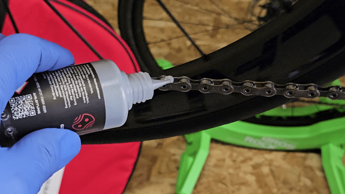 Die Kette nicht abwischen und auch nicht durchschalten. Die Wachsschicht soll auf der Kette bleiben und sich nicht auf Kassette und Schaltröllchen verteilen.