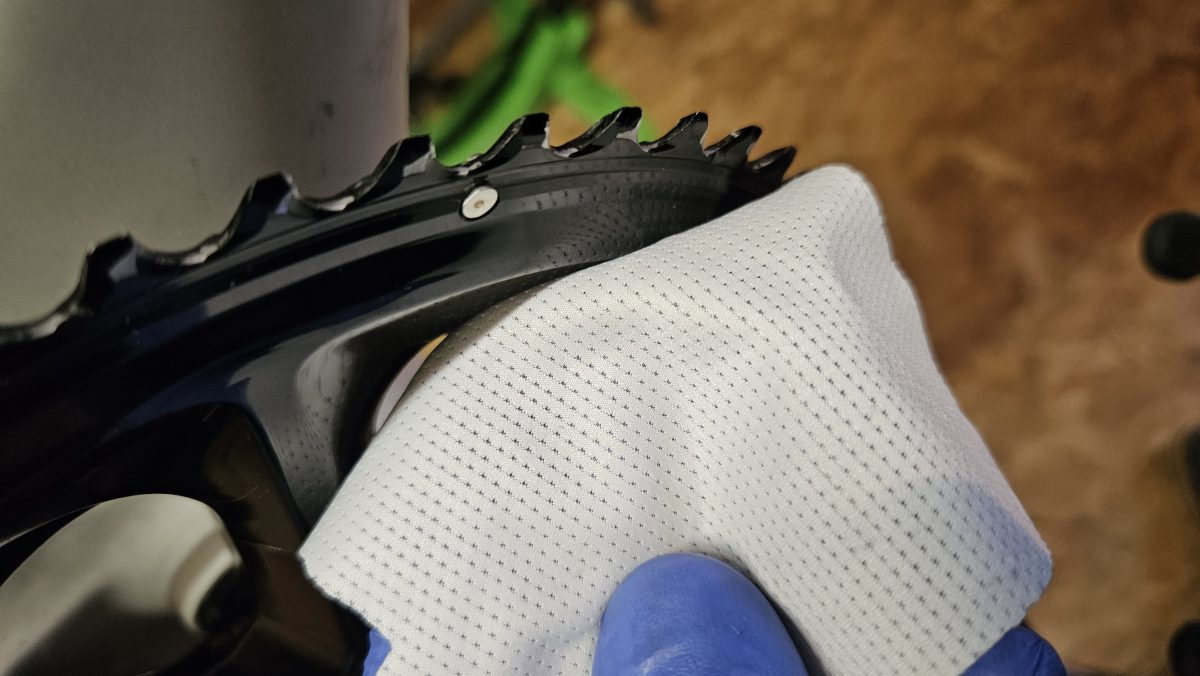 Danach mit Optimize Drivetrain einsprühen und mit dem Pinsel nachwischen. Im Set (Link zum Shop) ist eine Kordel, die durch die Zwischenräume gezogen wird.