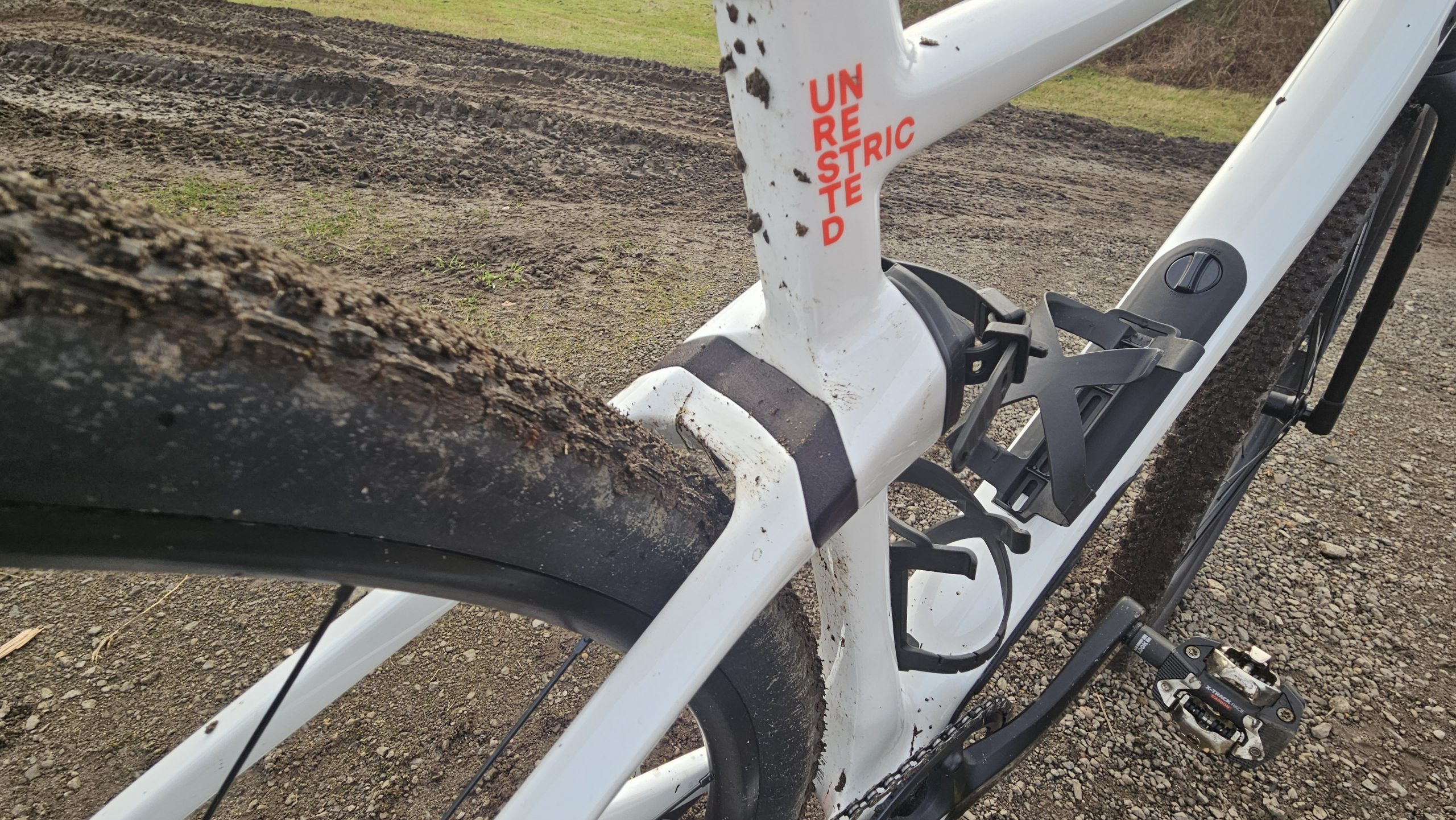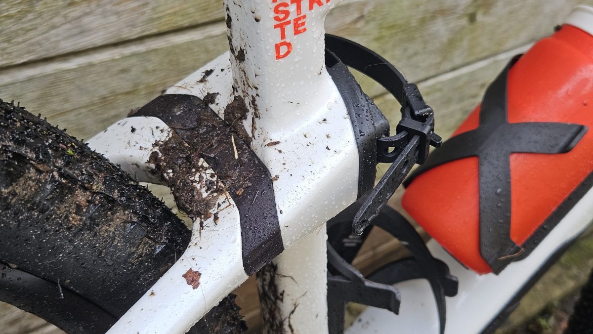 Ein funktionales Malheur ist die Verschraubung für Gepäck am Oberrohr. Die Schraube deckt die Öffnung im Rahmen nicht ab oder es fehlen Kappen. Damit ist eine kleine Lücke zwischen Rahmen und Schraube, in die unweigerlich Schmutz und Feuchtigkeit ein zuhause findet. Mit dem Rennrad im Sommer kaum der Rede Wert, bei einem Gravel ein Designfehler.