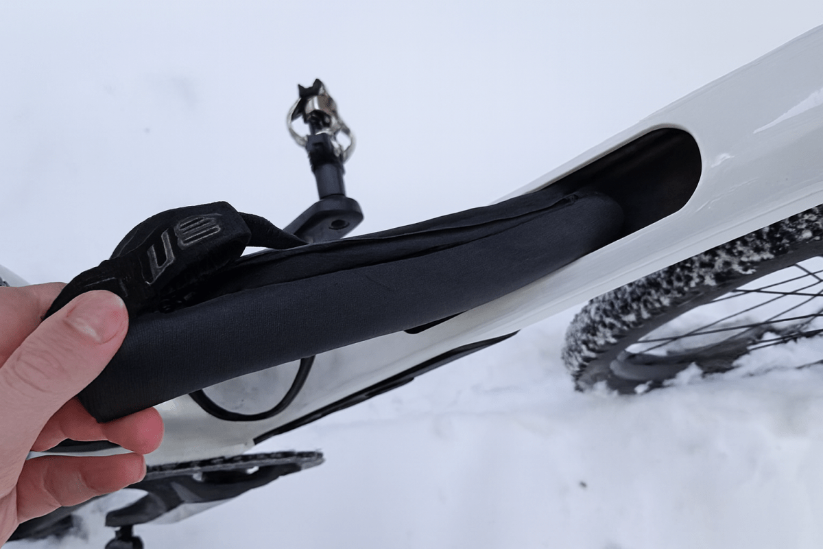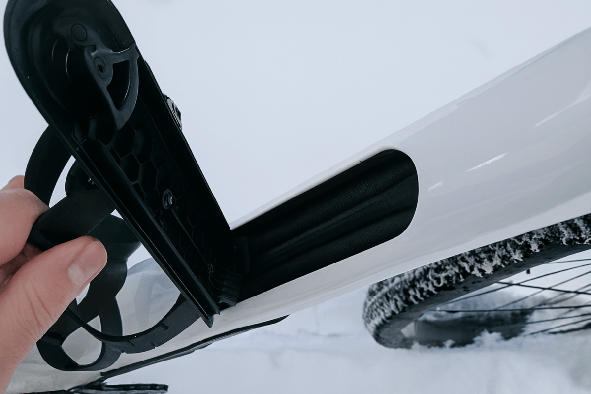 Für Abenteuer braucht man Proviant. Wie wäre es also mit einer versteckten Aufbewahrungsmöglichkeit? Wir haben sie. URS besitzt jetzt eine nahtlos in das Unterrohr integrierte Aufbewahrungslösung unter dem Flaschenhalter, samt einer speziell konzipierten Tasche. So kannst du weit reisen und hast die wichtigsten Utensilien immer zur Hand.