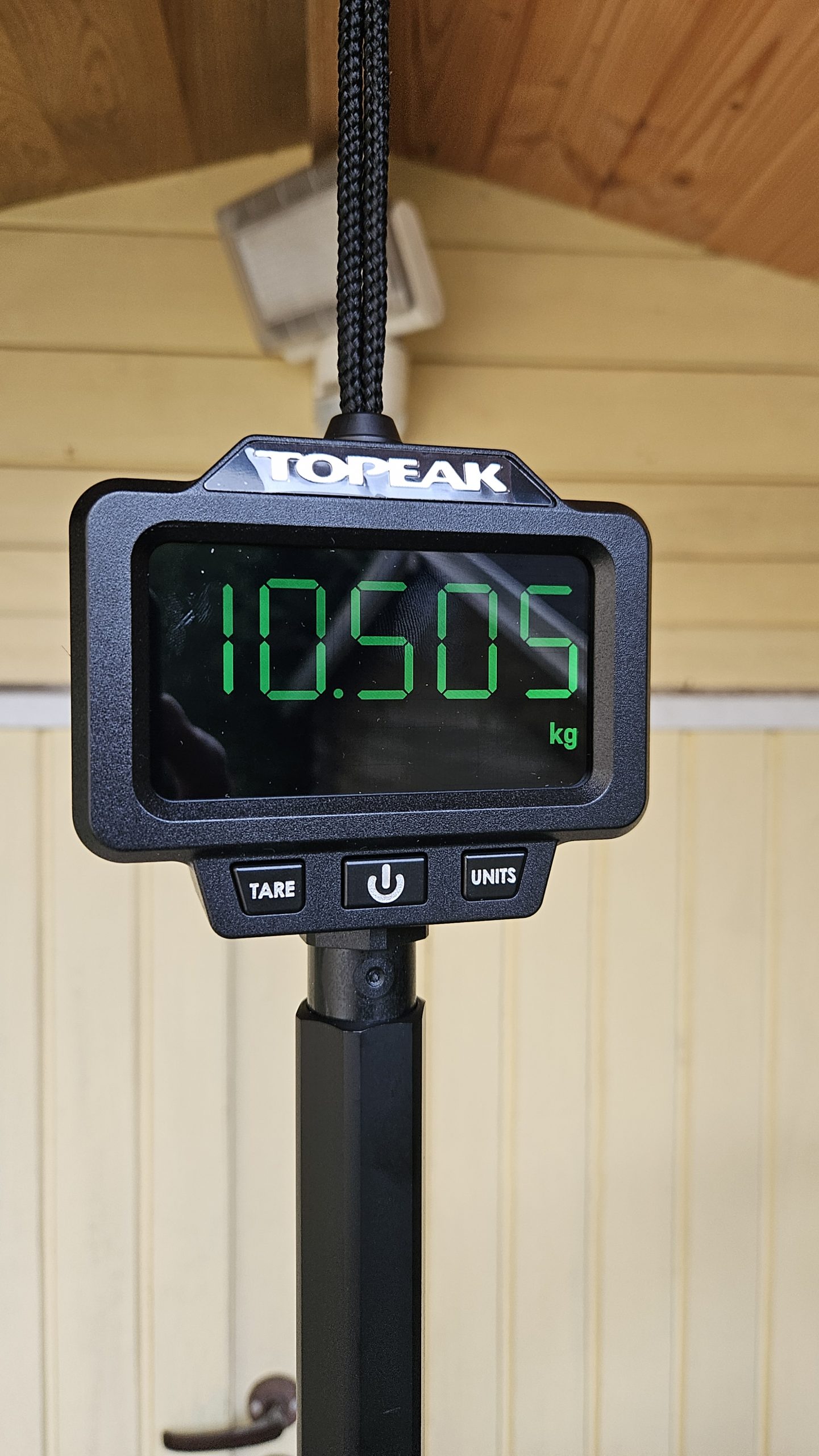 Gewichtsrekorde sind beim BMC Urs 01 nicht zu erwarten. 10,5 kg zeigt die Topeak Waage an und das stimmt exakt mit der Herstellerangabe.