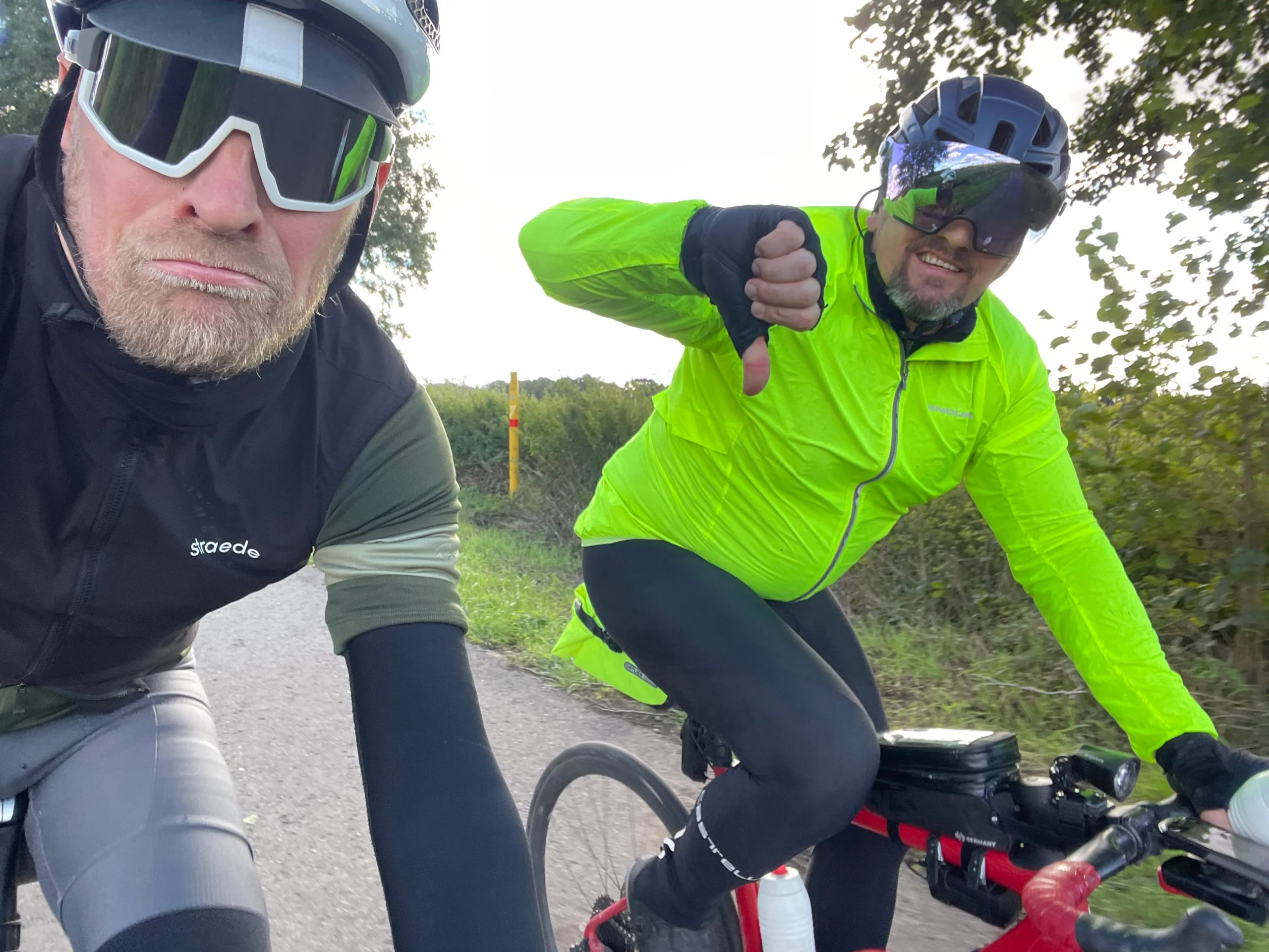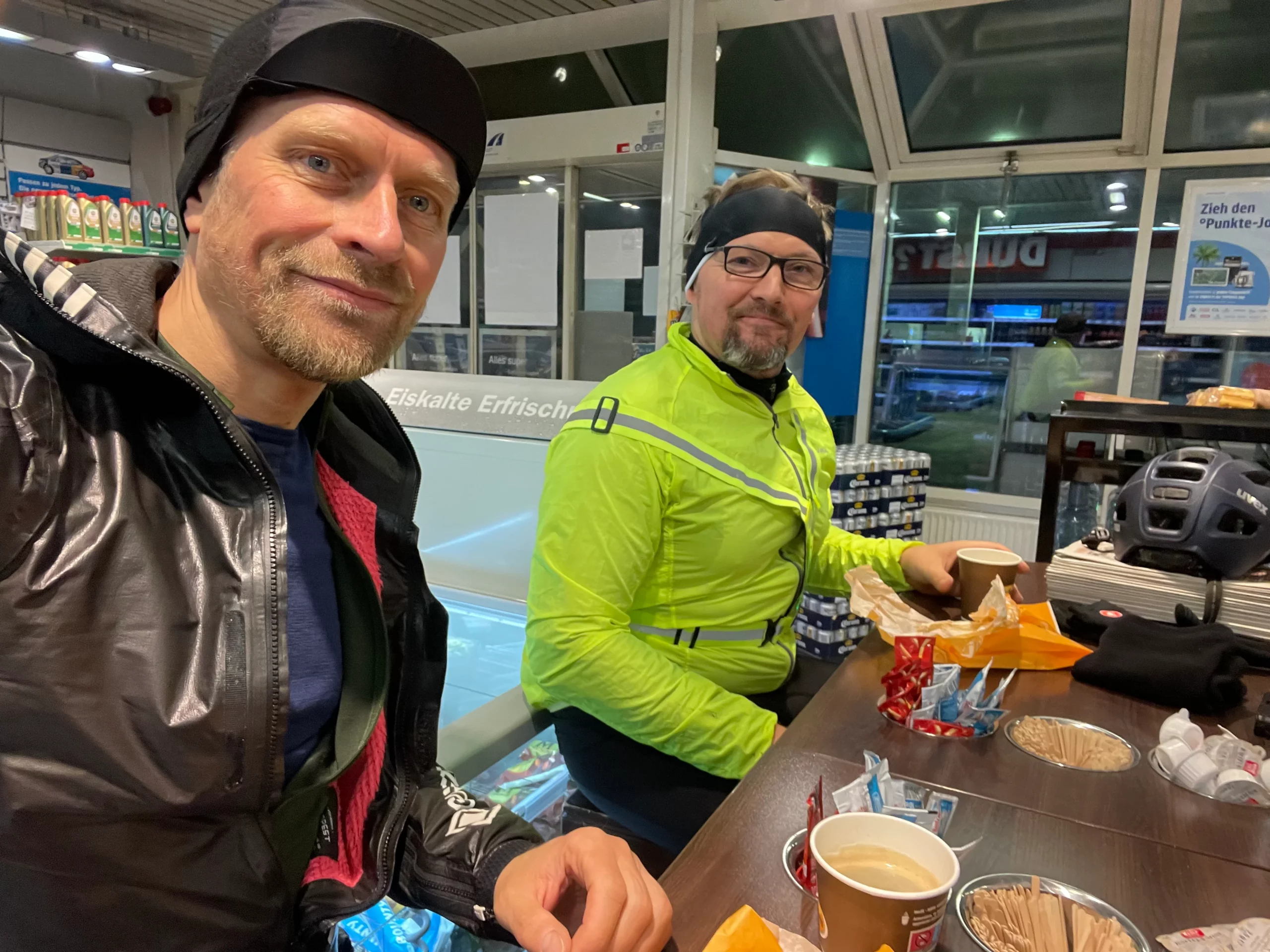 Von unseren anfänglichen vier Rennradenthusiasten sind am Ende nur Tim und ich übrig geblieben. Ist vielleicht nicht jedermanns Sache, im Oktober 500 km nonstop zu radeln.