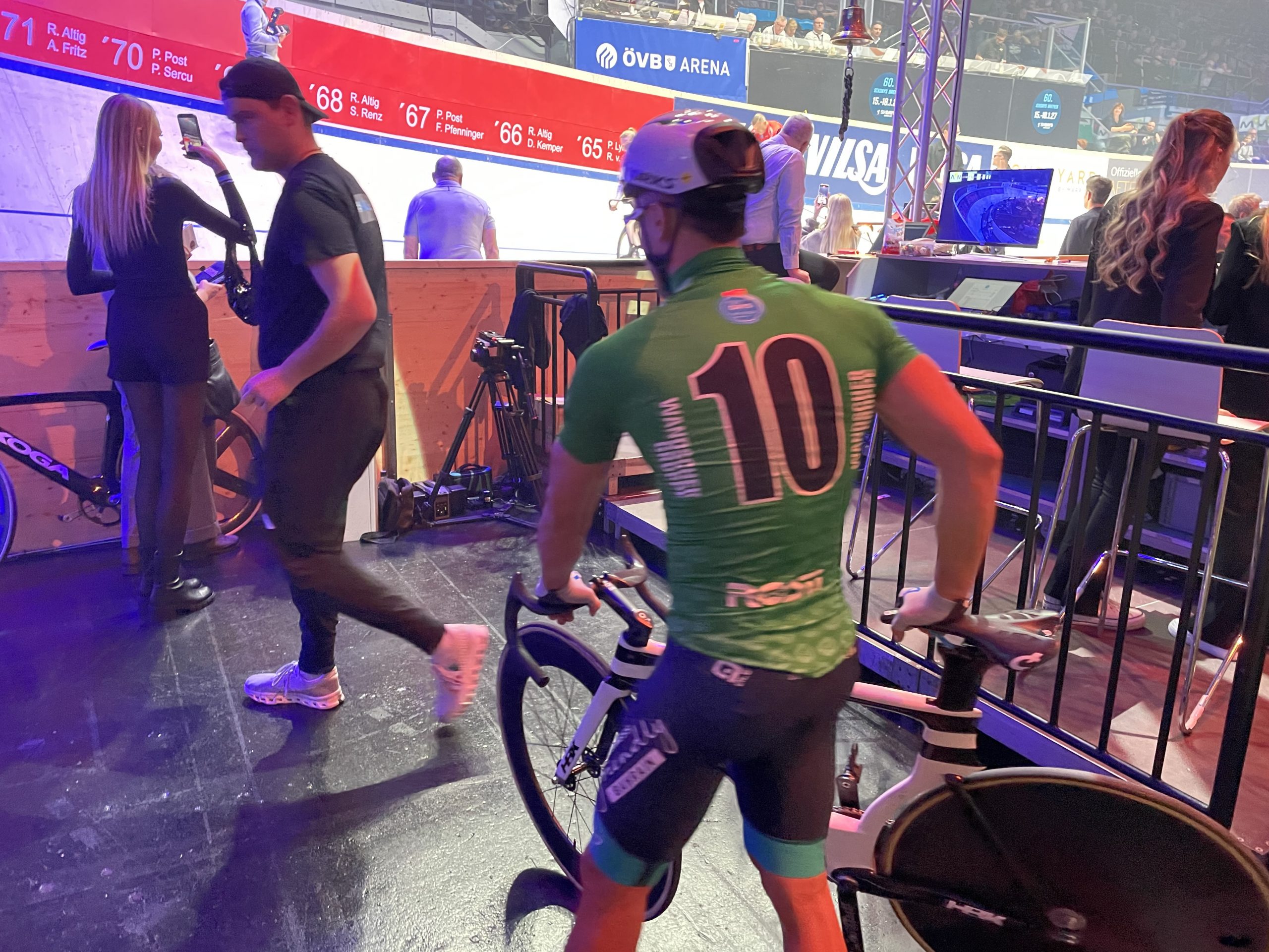 Moritz Augenstern ist ein aktueller Weltmeister. Und trotz seines Starstatus ein super angenehmer und nahbarer Typ. Auch auf seinem Insta (Link) findet man keine Poser-Fotos. Er verrät mir zwar nicht sein Gewicht, aber seine FTP (Functional Threshold Power) liegt bei 440 Watt. Ziemlich muskelbepackt und daher nicht der Leichteste, deshalb schätze seine W/Kg-FTP auf ca. 5,5. Das ist krass viel. Er bildet ein Team mit dem extrem erfahrenen und vielfachem Gewinner Roger Kluge. Als wir am Samstag dort sind führen sie die Gesamtwertung an. Es würde mich nicht wundern, wenn die beiden Deutschen das Ding gewinnen.
