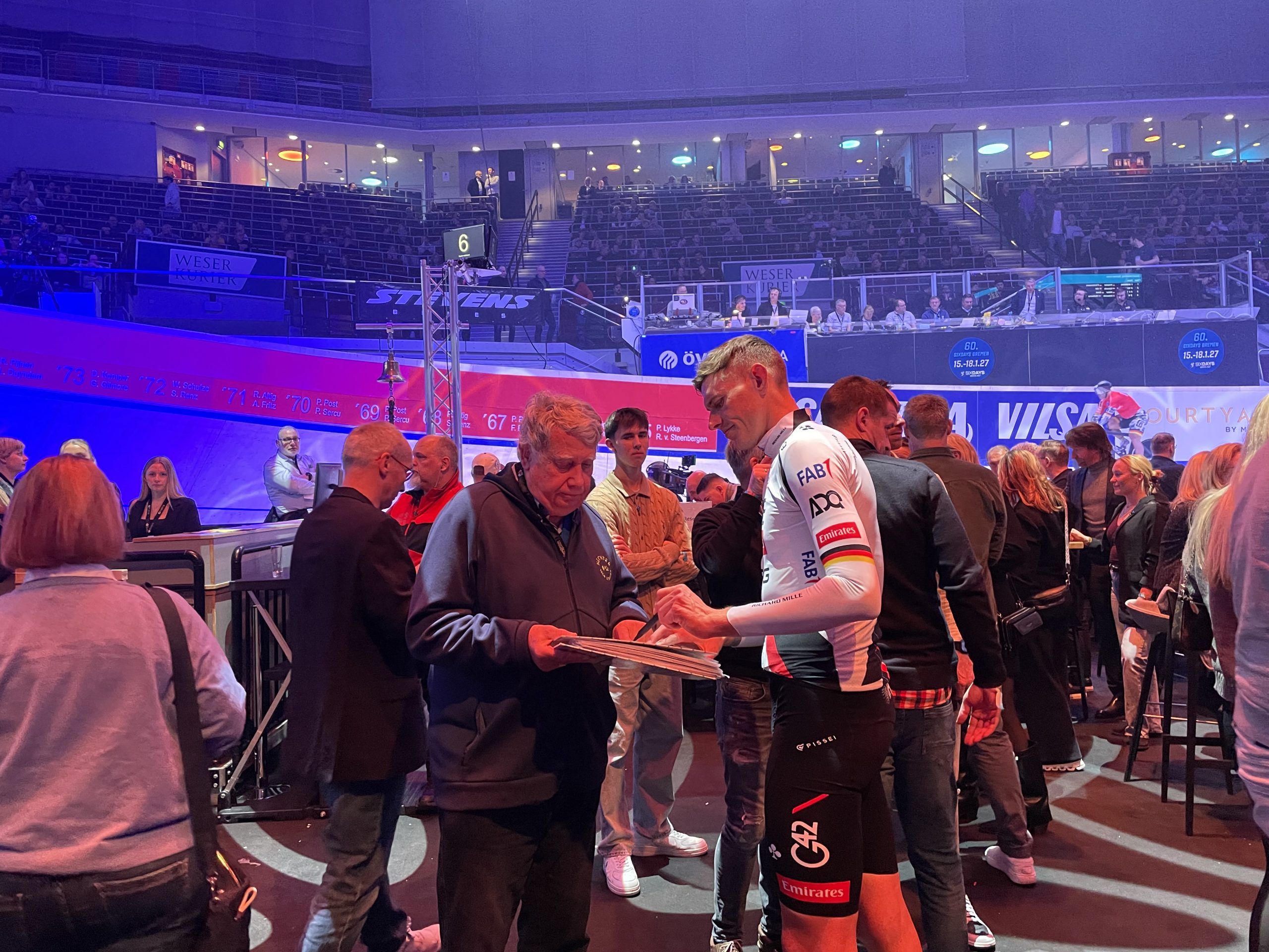 Mir fällt auf, dass weniger Besucher dort sind als im Vorjahr (Link zum Artikel Sixdays 2025 mit Nils Politt). Das mag aber daran liegen, dass Bremen momentan unter einer Schneedecke liegt, wie wir sie seit vielen Jahren nicht mehr erlebt haben. Der Straßenbahnverkehr ist gänzlich eingestellt, viele Straßen sind nicht geräumt und die Temperaturen bewegen sich im Minusbereich.