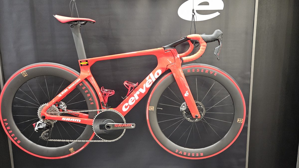 Ein bisschen Show hat Cervélo um das Rad von Jonas Vingegaard gemacht. Ferrarirot vom Lenkerband bis zu den Reifen und auch die Halterung für den Wahoo.