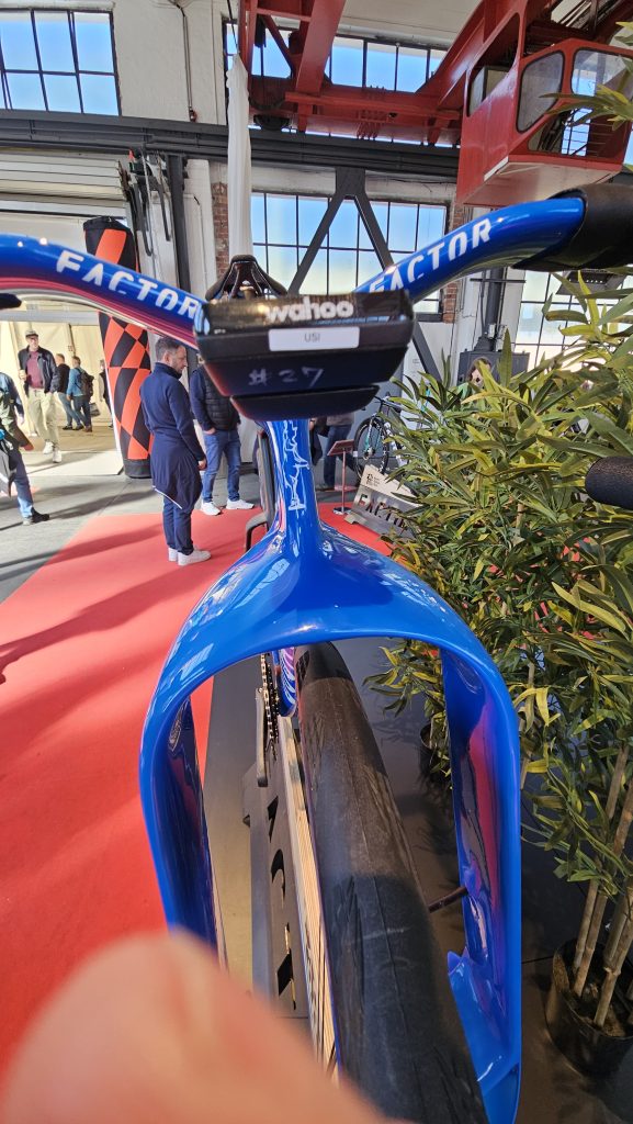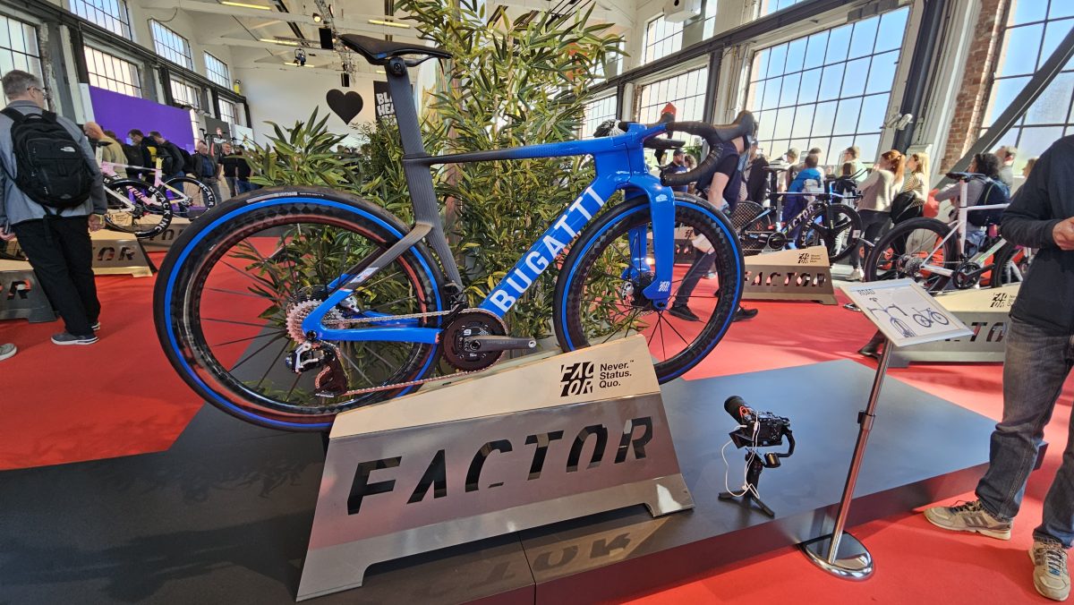 Die tolle Lackierung ist eins, Factor unterscheidet sich aber vor allem mit einem echten Fortschritt beim Rahmenbau. Auch das Factor Bugatti war in Düsseldorf und jeder konnte eines der auf 250 Stück limitierten Exemplare anfassen. Wer 25.800 Euro für ein Rennrad auf den Tisch legt, kann damit auf der nächsten RTF angaben (Foto).