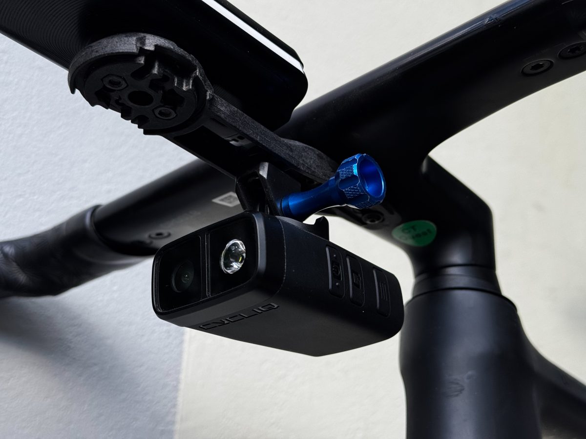 Die Montage am Rad erfolgt über einen festen Bajonettverschluss entweder mit der Cycliq Halterung oder über den GoPro Adapter mit einem GoPro Mount. Eine Halterung, die sowohl die Kamera als auch einen Radcomputer aufnimmt, ist von Cycliq ebenfalls erhältlich. Allerdings gibt es eine Einschränkung: Die Cycliq Halterung ist nur für runde Lenker geeignet. Aerolenker oder Cockpits brauchen eine eigene passende Halterung. Zum Glück gibt es am Markt viele Computerhalterungen, die einen GoPro Mount mitbringen.