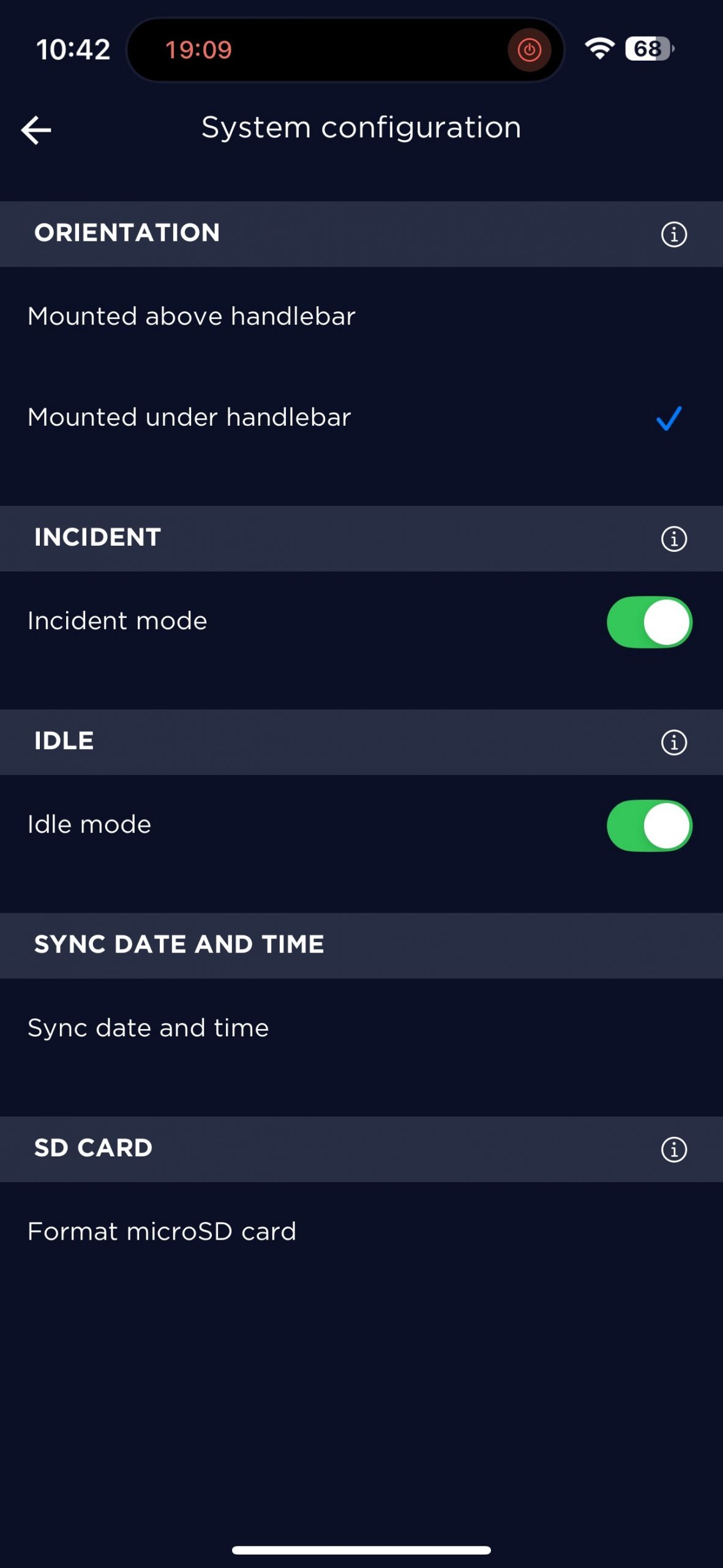 Ich habe mich für die Befestigung mittels GoPro Halterung entschieden. Dazu muss der Adapter mit der Kamera verbunden werden, was recht schwergängig ist. Einmal montiert, sitzt dieser bombenfest. Die Kamera kann entweder über oder unter dem Lenker montiert werden. In der App lässt sich die erfolgte Montage einstellen, die Aufnahmen sind dann gleich richtig orientiert. Ein Sensor, der die Orientierung automatisch erkennt, wäre hier noch praktischer. Die Schraube zu Arretierung sollte man fest anziehen. Sonst verdreht sich die Kamera durch ihr hohes Eigengewicht zu schnell.