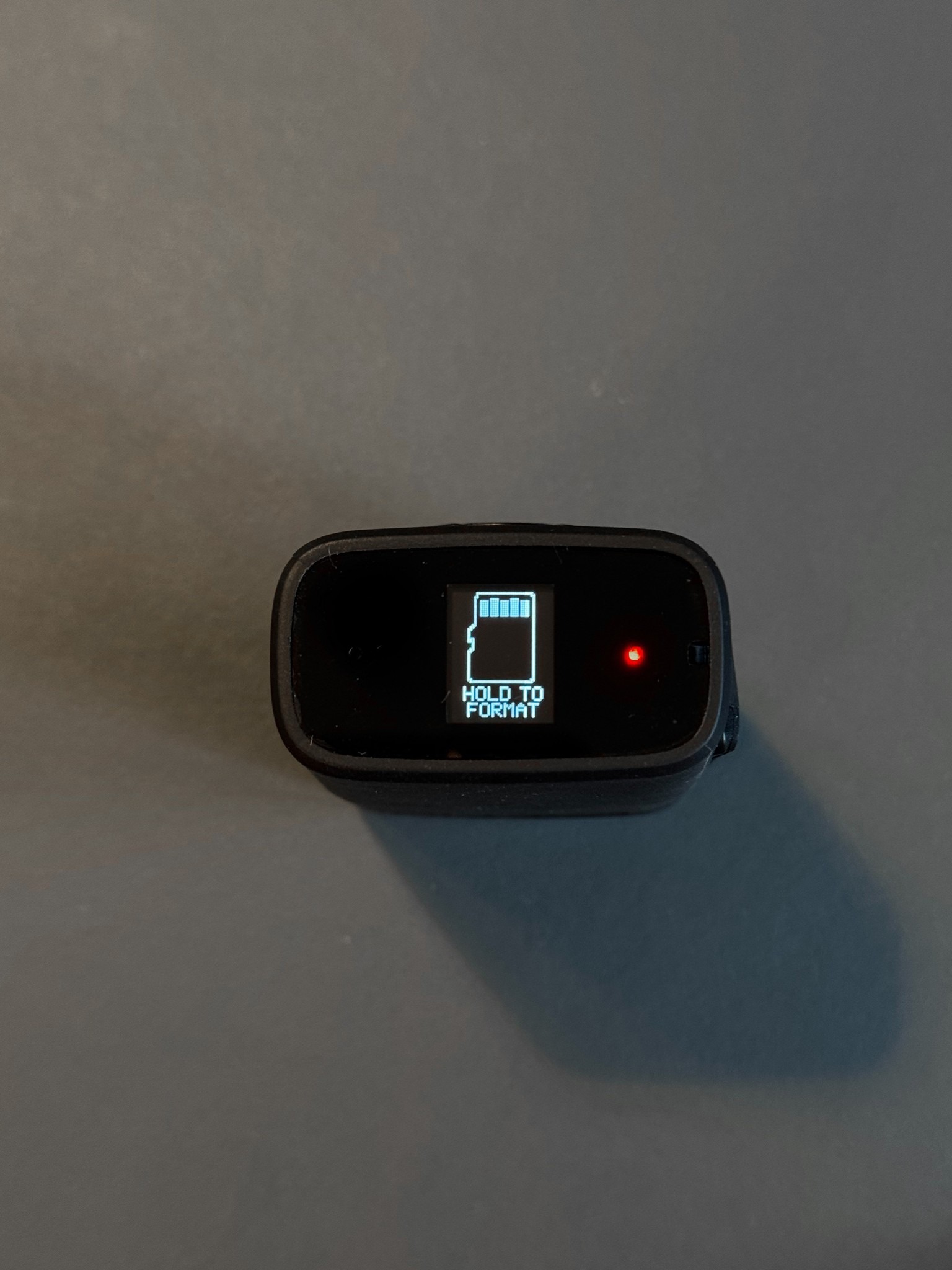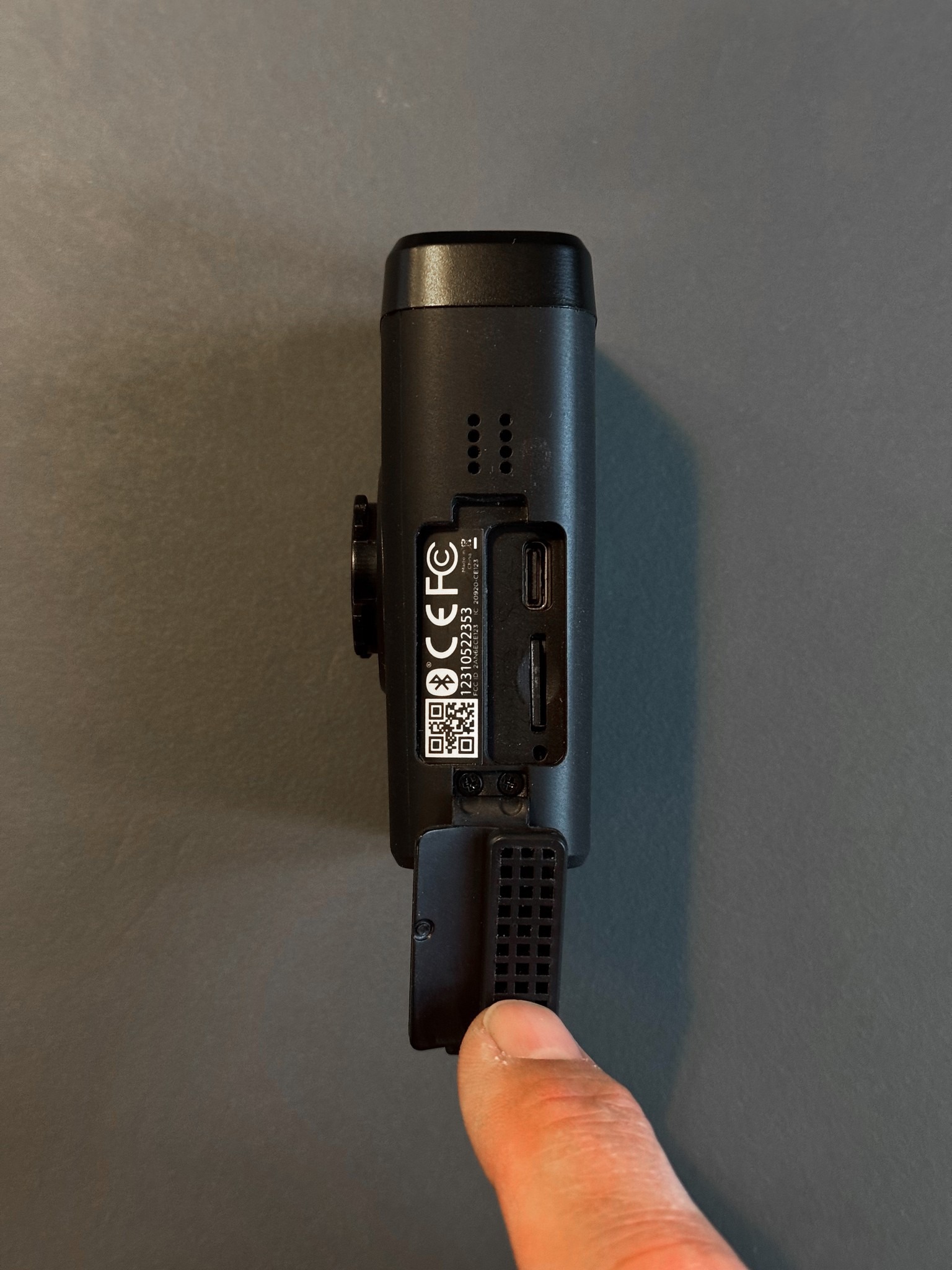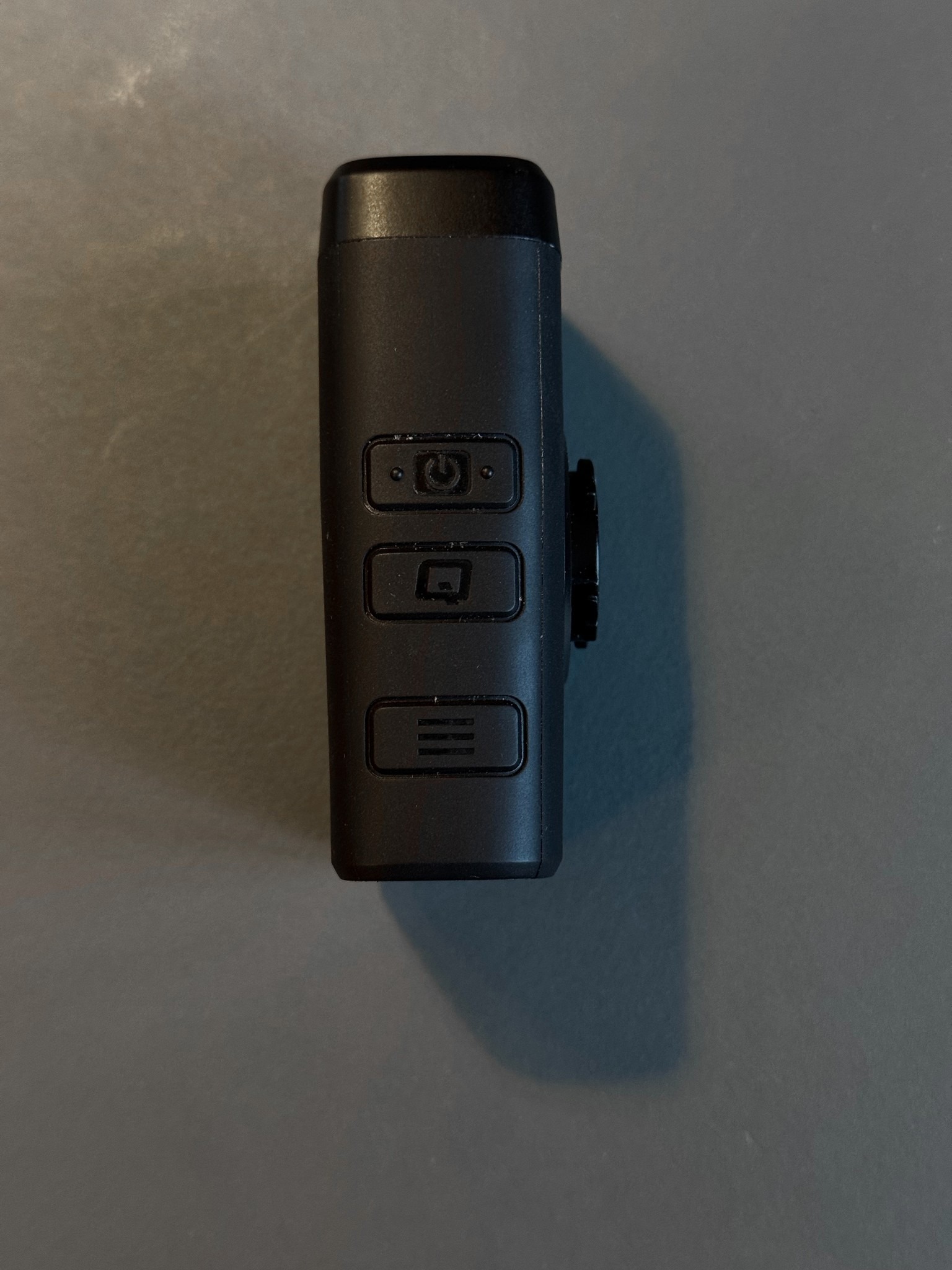 Die Fly12 hat 3 Knöpfe und ein kleines Display auf der Rückseite. Mit dem Power Knopf schaltet man sie Ein- und Aus und wechselt auch die Lampen Modi. Mit dem Q Knopf löst man die Video-Sicherheitsfunktion aus: die aktuelle Aufnahme wird gegen Löschen geschützt. Über das Hamburger Menü kann man die Ausrichtung festlegen, die SD Karte formatieren oder das Gerät komplett zurück setzen.