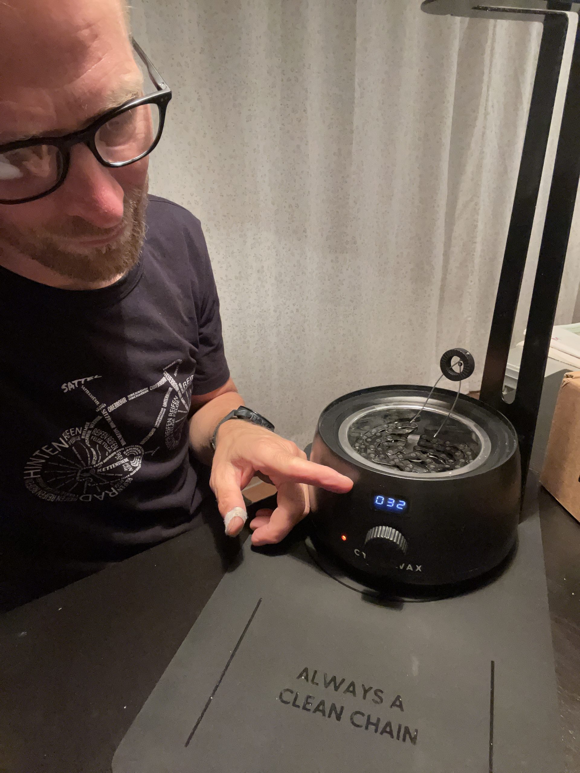 Das Starter Kit kommt zum stolzen Preis von ca. 250 EUR, aber ich würde es uneingeschränkt einem selbst gezimmerten Versuch mit Topf auf dem Herd, fehlendem Abtropfständer und ewigen Recherchen im Internet vorziehen. Außerdem liegt dem Starterkit eine vorgewachste Kette bei, in meinem Fall eine Sram Force AXS 12fach (Einzelpreis ca. 90 EUR).
