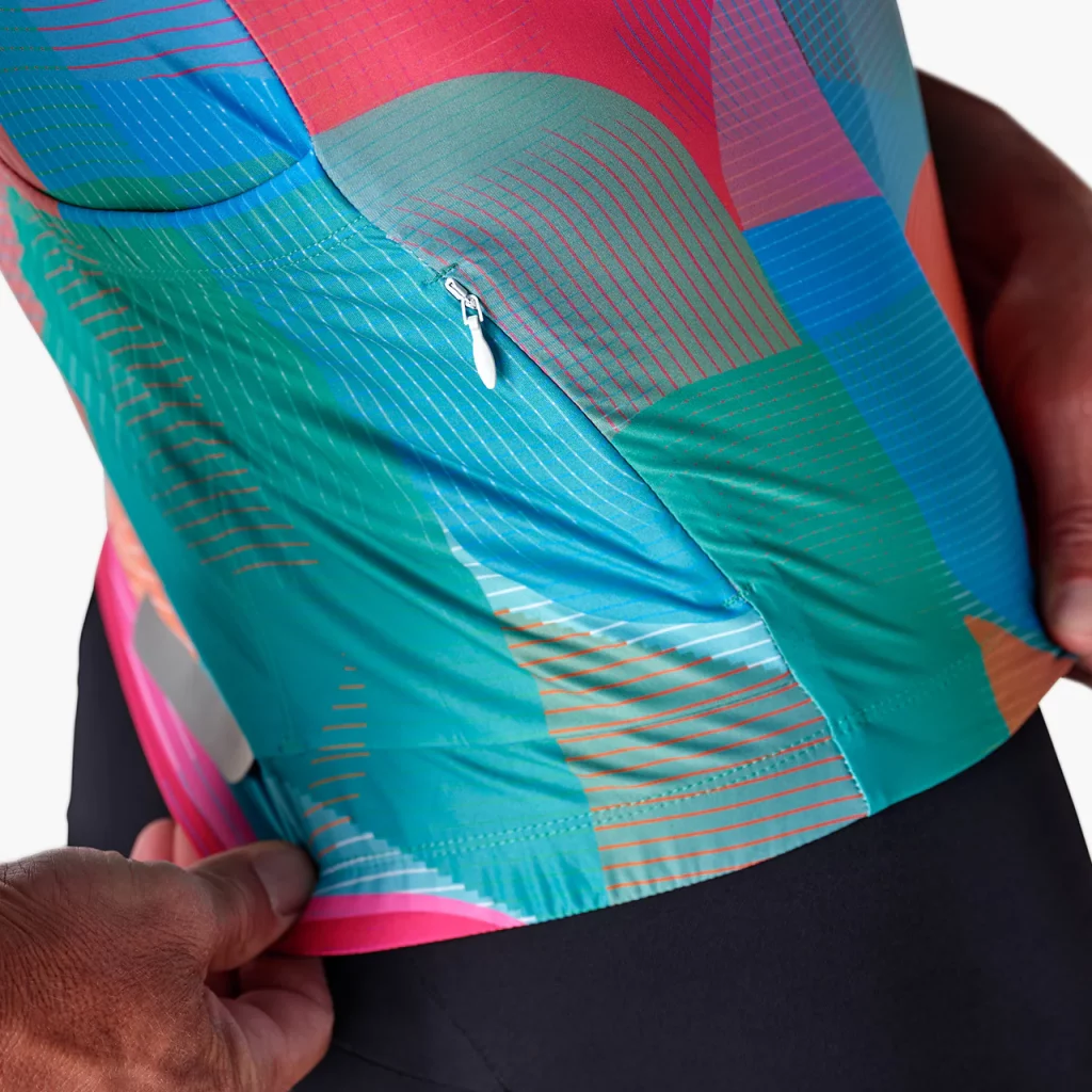 Ein wiederkehrendes Stilmittel ist die matte Optik vieler Stoffe, kombiniert mit dezenten geometrischen Linien oder topografischen Mustern. Das ist weder verspielt noch rein funktional sondern eher eine kontrollierte Zurückhaltung, die sich bewusst von manchmal allzu grellen Trikotfarben absetzt. Wer nach auffälligen Farben oder stark kontrastierenden Elementen sucht, wird bei Ryzon deshalb eher nicht fündig. Dafür bekommt man einen modernen, zeitlosen Look, der im Rennen und bei jeder Teamausfahrten gut aussieht.