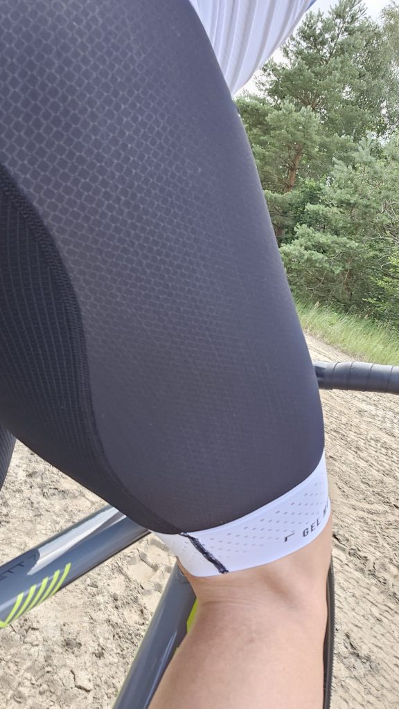 Warum fällt das draußen nicht auf? Bei ordentlichen Touren und heißen Tagen, holt man natürlich sowieso nur die guten Sachen aus dem Schrank. Workouts unter der Woche, meist bei kühleren Temperaturen, fahre ich mit der eher günstigen Castelli Velocissima. Der Wind unterstützt das Material beim trocknen und sogar die billigsten Polster bleiben auf 2-stündigen Ausfahrten noch in Form. Nur die dünnen Träger merke ich, denn die sind ein wenig unbequemer.