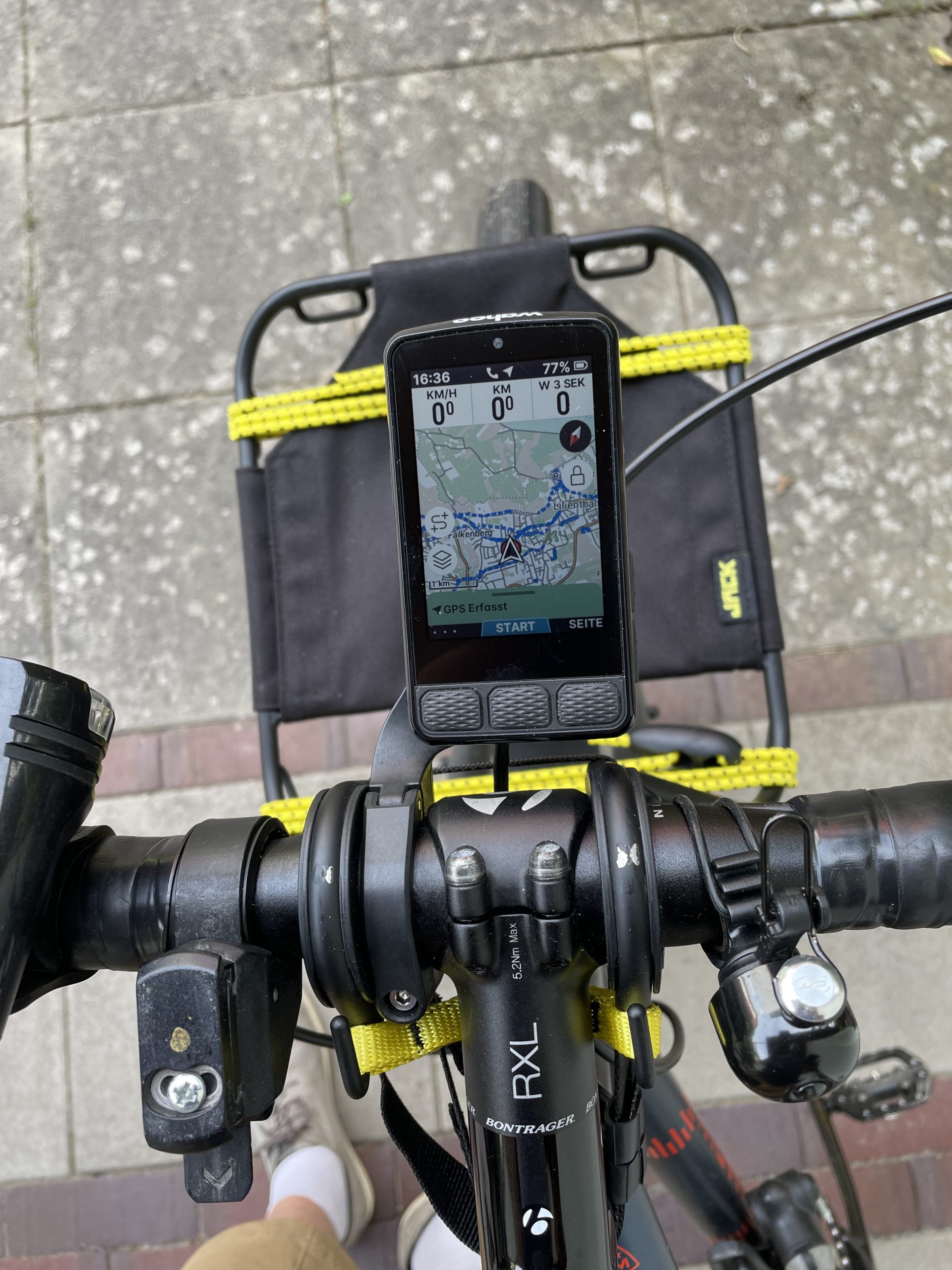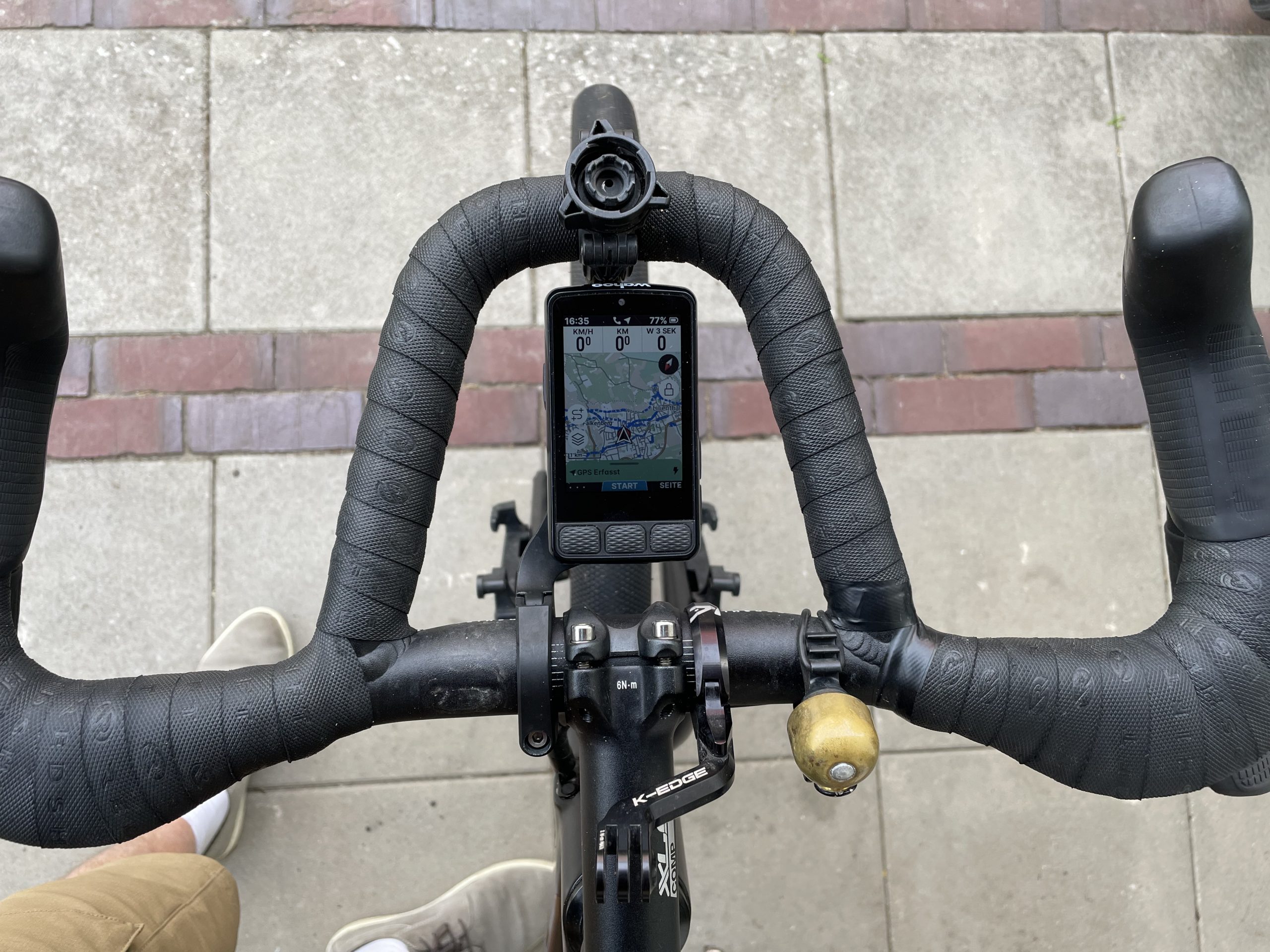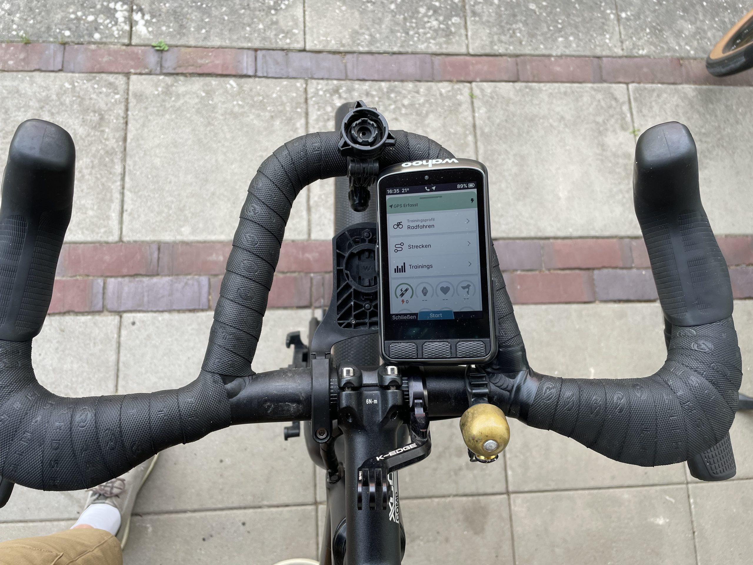 Da ist zunächst die nächste Hürde: auf viele meiner Räder passt der große Wahoo Ace nicht an den Lenker. Beim Redshift Kitchen-Sink Lenker mit Loop ist nicht daran zu denken. Bei meinem Aerolenker kann die mitgelieferte Aluhalterung von Wahoo nicht montiert werden, da sie für einen runden 31,8 mm Lenker gedacht ist, aber die integrierte Carbon-Halterung des Lenkers ist zum Glück lang genug. Also montiert, eingeschaltet und losgefahren.