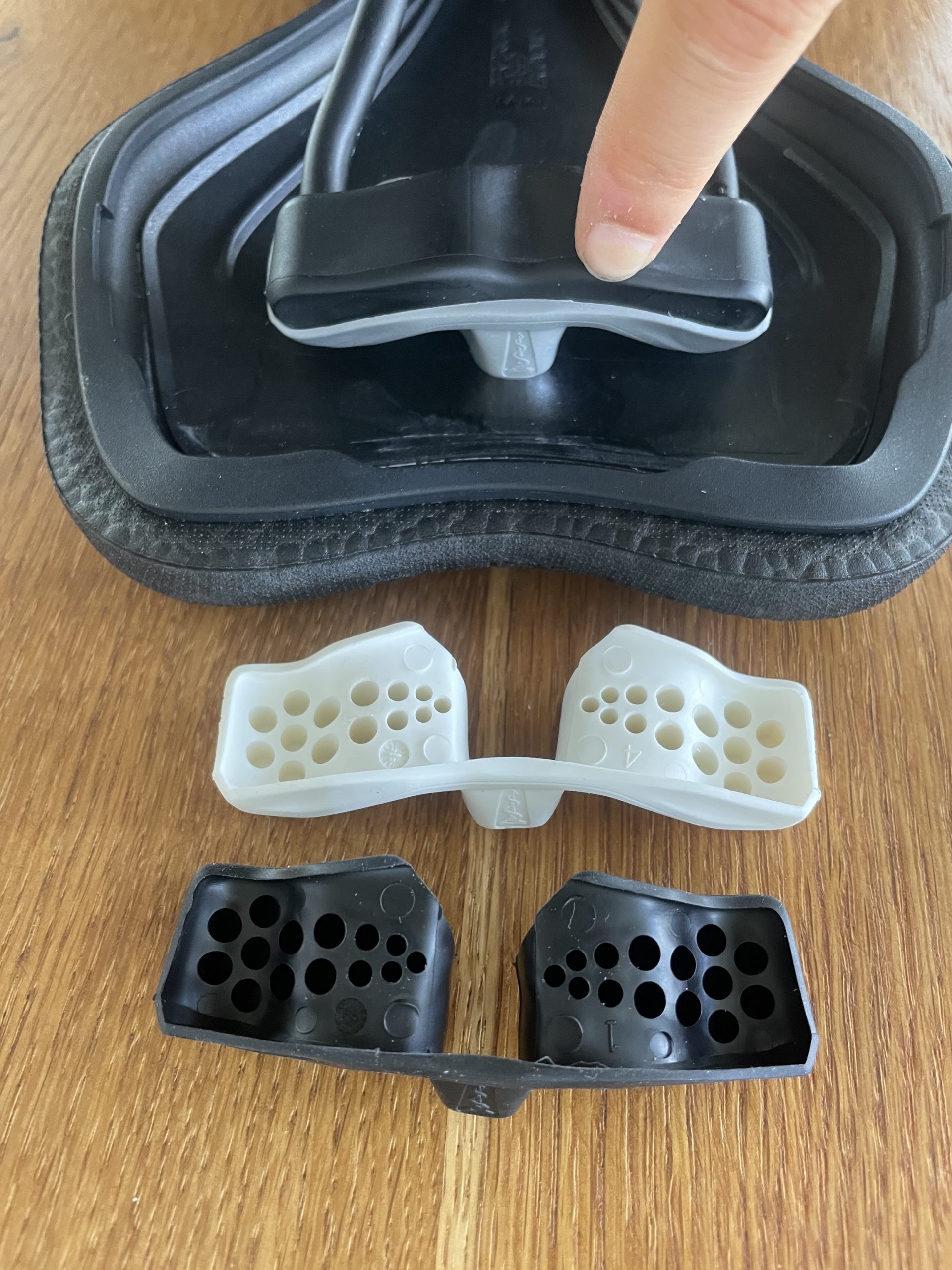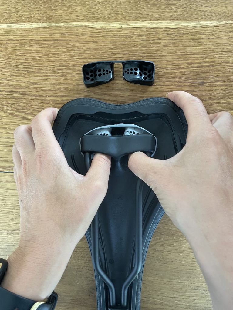 Wie cool ist es dann einfach ohne Aufwand sich der ClipOn Technik von SQLab zu bedienen. Zum Abnehmen wird das Cover einfach an bestimmten Punkten entriegelt und das neue Cover über eine spezielle Führung eingerastet. Um die natürliche Tretbewegung zu unterstützen ist dem Sattel ein Elastomer beigefügt. Das Elastomer soll Druck auf die Bandscheiben reduzieren und ist in drei verschiedenen Härtegraden beim Kauf des Sattels dabei.