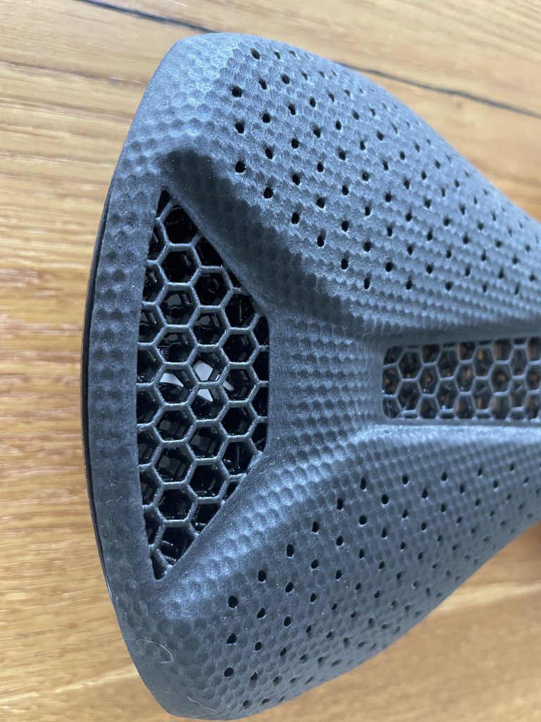 - Mirror-Technologie: Die komplexe Wabenstruktur der Mirror-Technologie wird durch den 3D-Druck eines flüssigen Polymers erzeugt und passt sich perfekt an die individuelle Anatomie an. Im Gegensatz zu herkömmlichem Schaumstoff ermöglicht die Mirror-Technologie, unterschiedliche Dichten innerhalb der Matrix zu schaffen. Warum Mirror? Weil sich die Sattelstruktur wie ein Spiegel der Gesäßanatomie anpasst und somit eine maßgeschneiderte Unterstützung bietet.