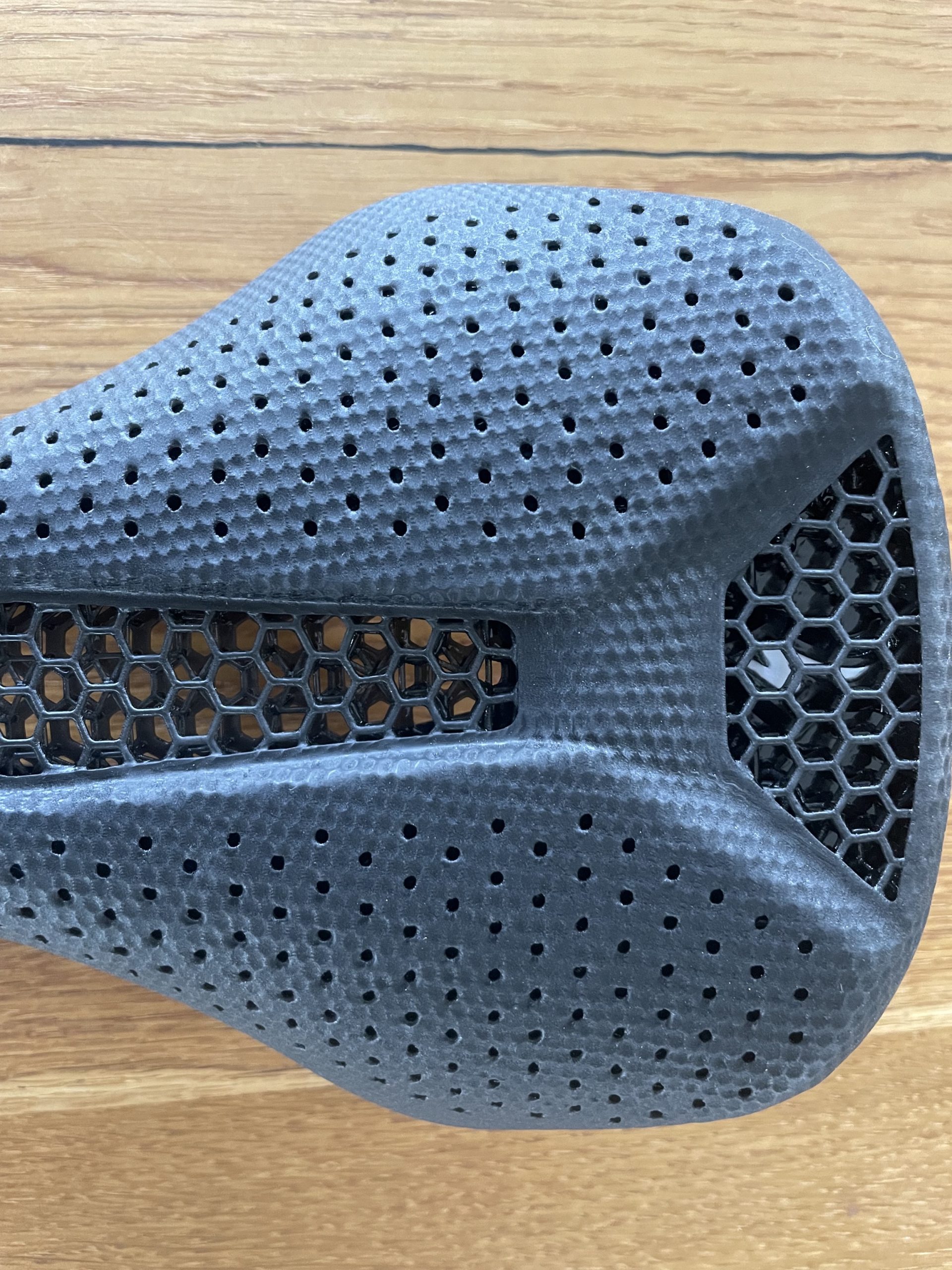- Mirror-Technologie: Die komplexe Wabenstruktur der Mirror-Technologie wird durch den 3D-Druck eines flüssigen Polymers erzeugt und passt sich perfekt an die individuelle Anatomie an. Im Gegensatz zu herkömmlichem Schaumstoff ermöglicht die Mirror-Technologie, unterschiedliche Dichten innerhalb der Matrix zu schaffen. Warum Mirror? Weil sich die Sattelstruktur wie ein Spiegel der Gesäßanatomie anpasst und somit eine maßgeschneiderte Unterstützung bietet.