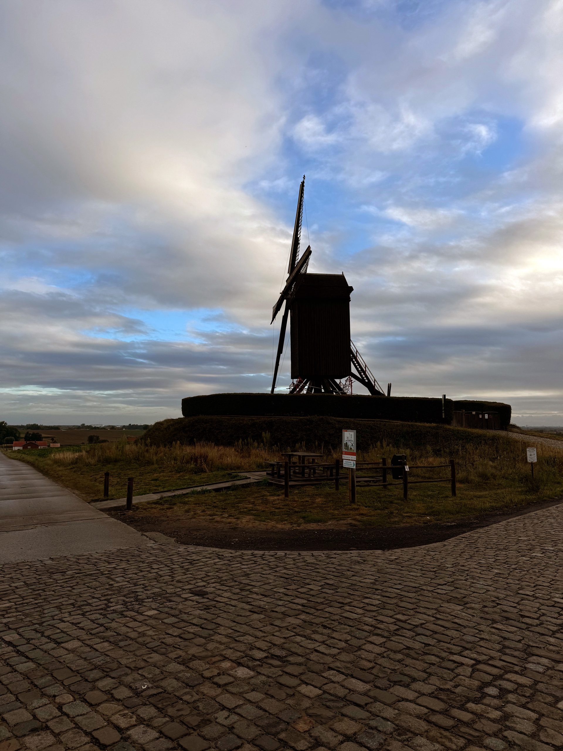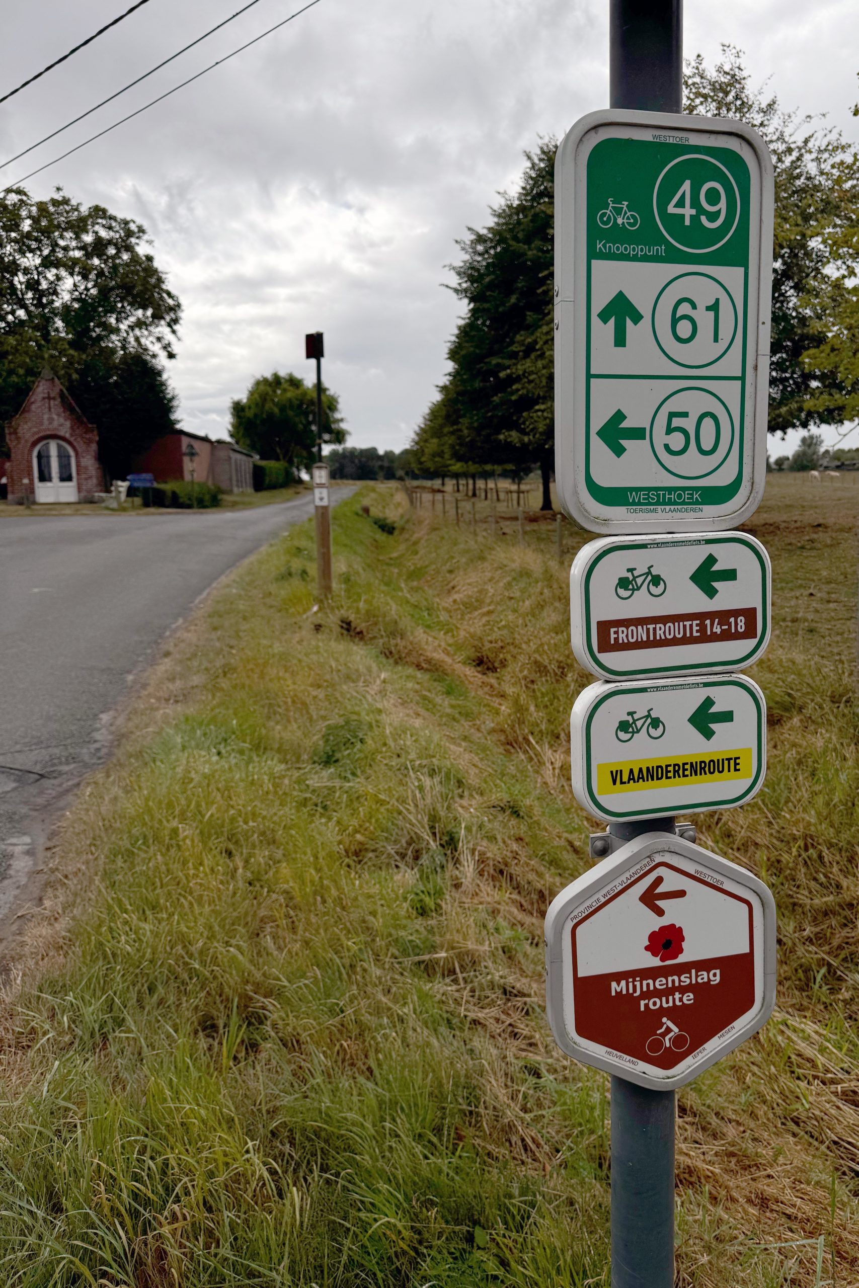 Nachdem ich am vorigen Abend in Gent angekommen bin, geht es heute an die erste Etappe. Ich bin noch unsicher, ob ich das ganze in drei oder vier Tagen fahren will. Daher fange ich mit einer Route an, die in beiden Varianten vorkommt. In Ieper angekommen, regnet es erst mal. Macht nichts, ich bin früh dran und die Route heute umfasst nur ca. 74 km. Nach einem Kaffee hört der Regen auf und ich schwinge mich gegen 12:30 aufs Rad. Das erste Segment starte ich gegen 13:15. Diese Zeit ist wichtig, da ich ja das 72h Zeitlimit einhalten muss.