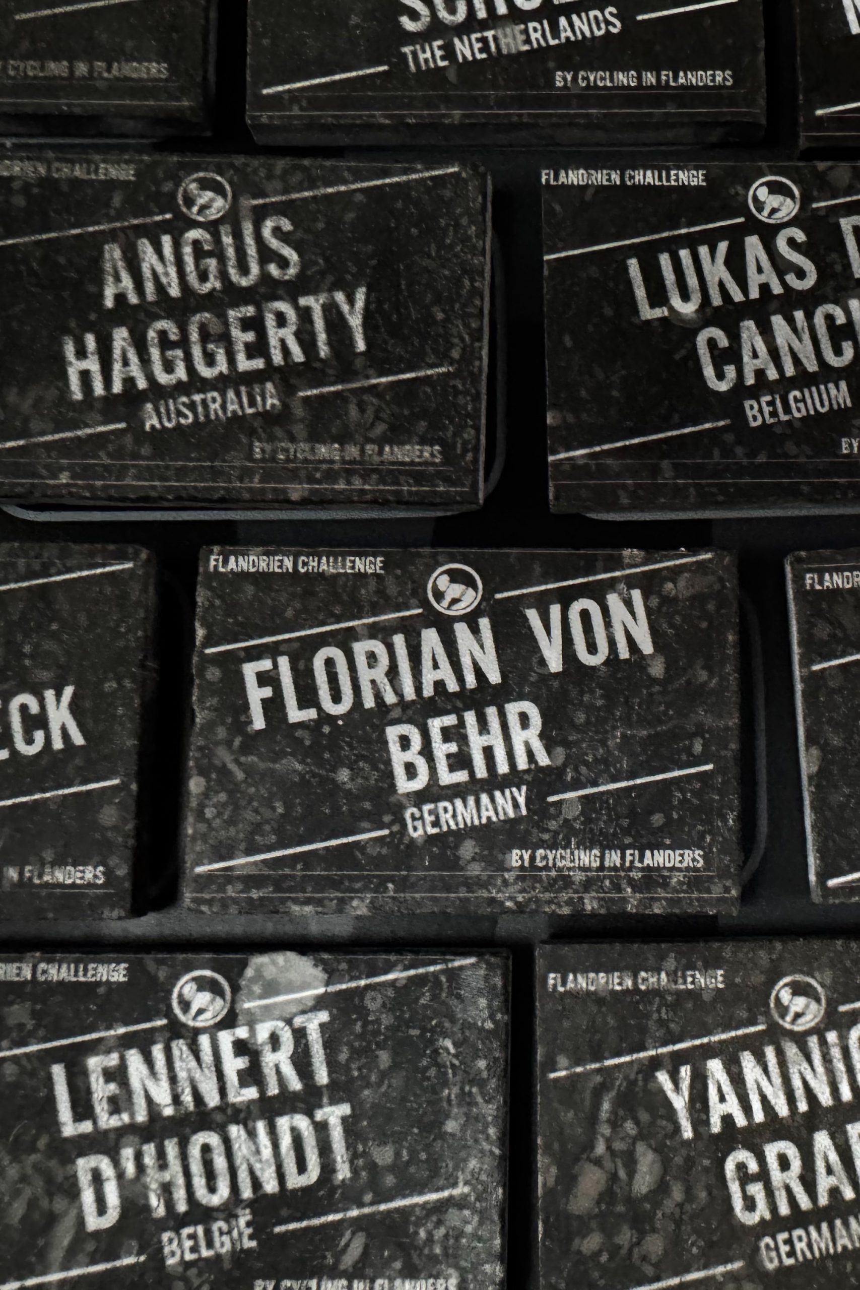 Die Flandrien Challenge ist schnell erklärt. Man muss in 72 Stunden die 59 berühmtesten Kopfsteinpflaster Abschnitte und Anstiege fahren. Hat man dies geschafft, gibt es als Belohnung einen gravierten Pflasterstein, den man im Museum der Ronde van Vlaanderen an die Wall Of Fame klebt.