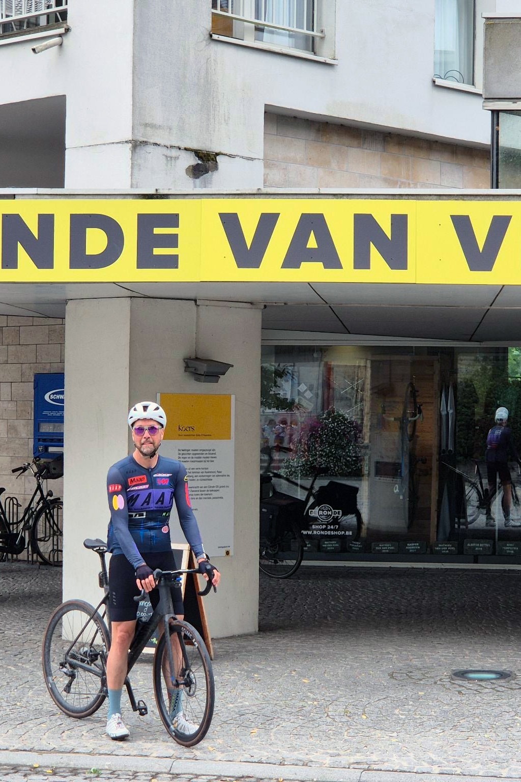 Etwas nervös speicher ich die Route auf meinem Garmin und checke die Flandrien Challenge Webseite. Habe ich wirklich alle Segmente erwischt? Ja. Da steht 59/59. Challenge abgeschlossen. Erleichtert geht es nun ins Museum Ronde van Vlaanderen, wo ich als Belohnung einen gravierten Pflasterstein mit meinem Namen erhalte, den ich an der Wall of Fame platzieren darf. Einen zweiten Stein gibt es für 5€ zum Mitnehmen.