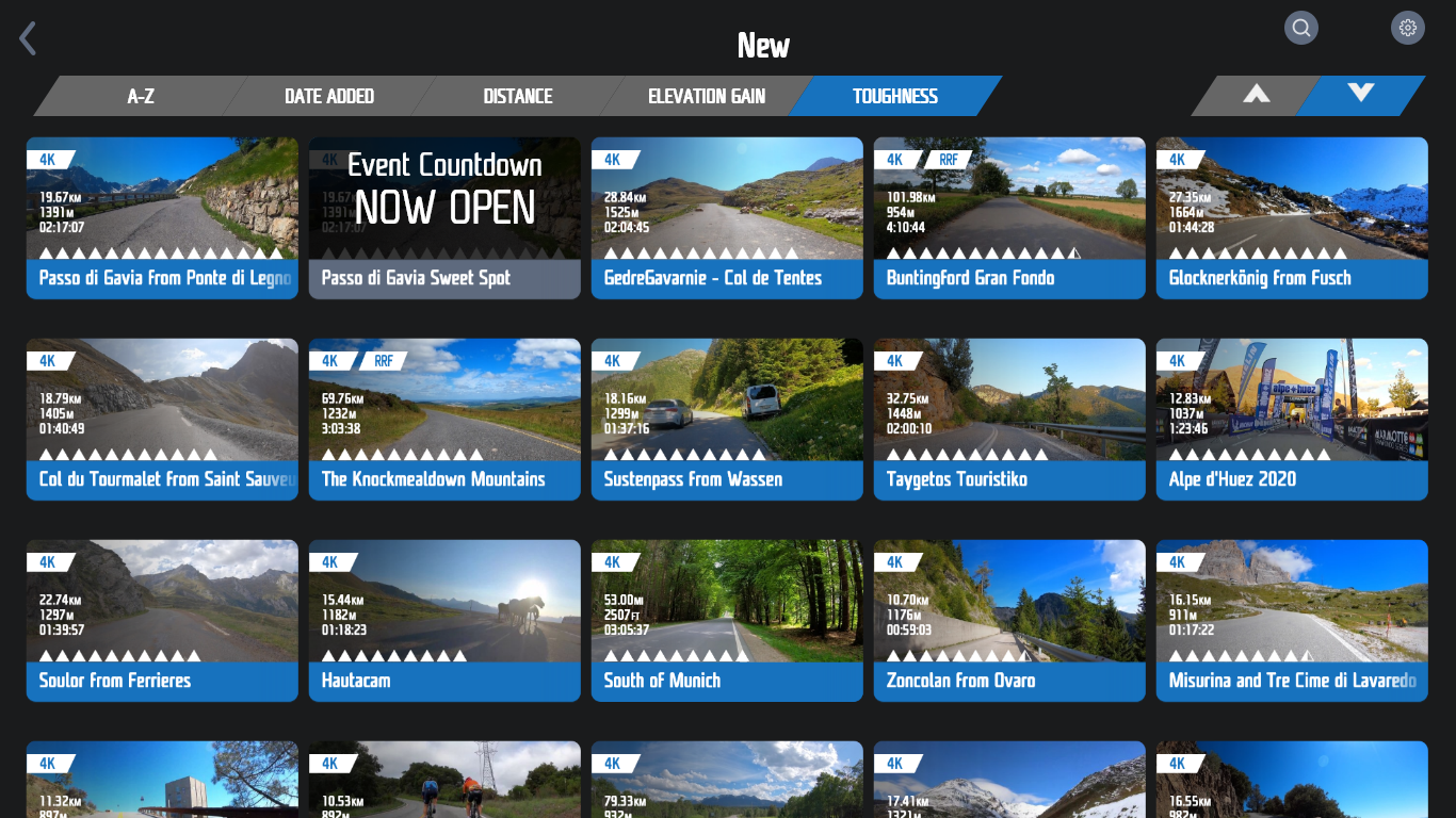 Großer Unterschied zur Trainingsapp Rouvy ist, es gibt nur Highend-Videos und die rucken nicht. User können auch eigene Videos hochladen, bei FulGaz geht es aber um Klasse statt Masse. Insgesamt gibt es über 2.000 Stunden Filme, die von kurzen Spazierfahrten über Gardasee bis zur Ironman-Strecke auf Hawaii reichen. Bei der Vielzahl an Routen ist es gut, dass alle Strecken nach Kriterien sortiert sind. Leicht, bergig, Group-Rides, lange Touren, gerade beliebt, neue und so weiter. Mountainbiker dürfen bei FulGaz sogar im richtigen Wald fahren.