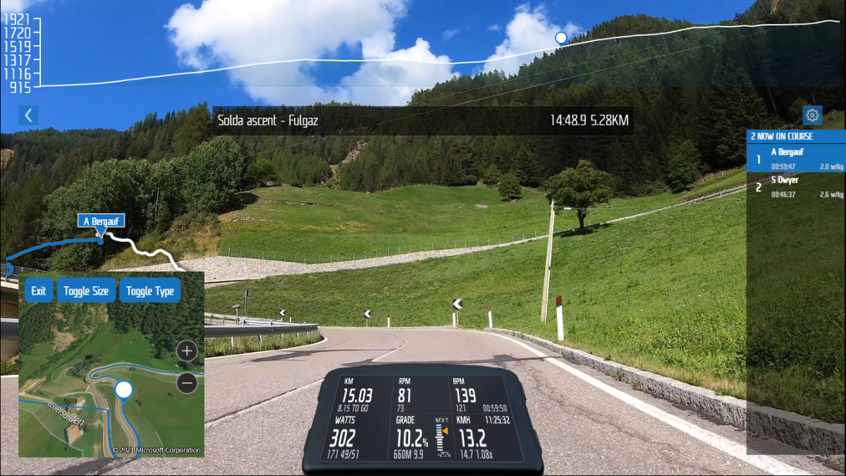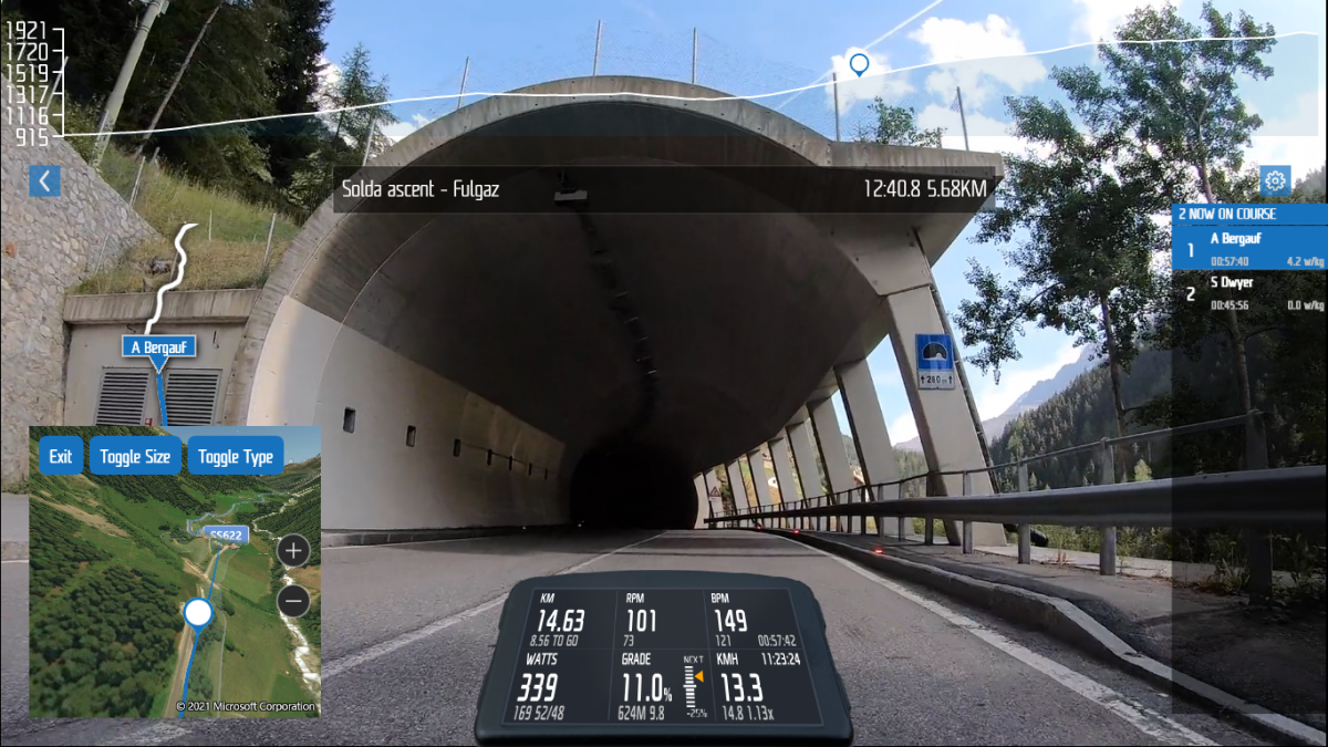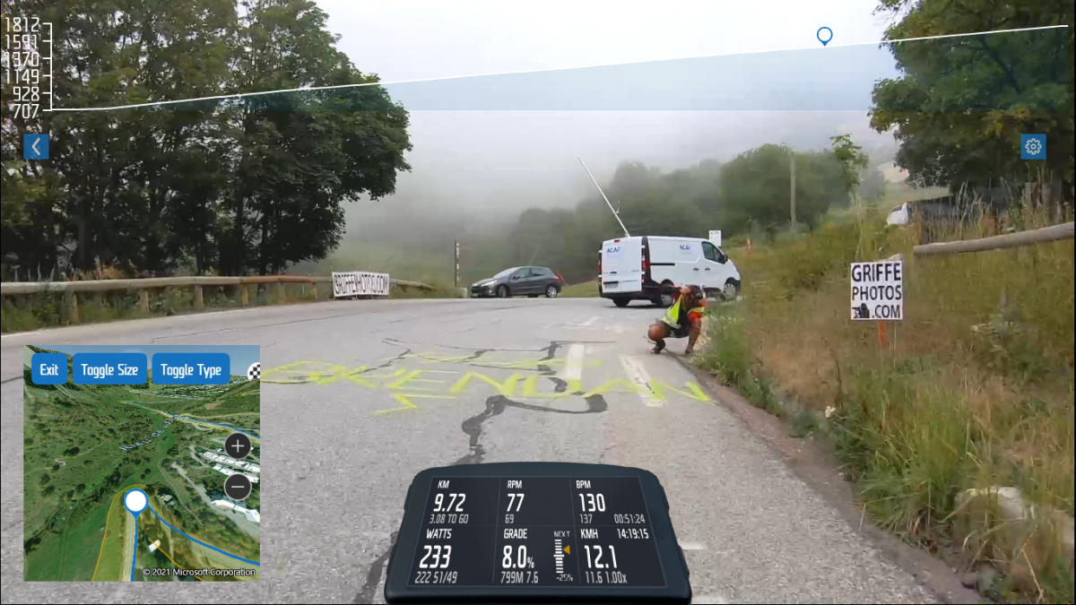 Fazit: Kurze 14 % Steigung bei Zwift bringend zwar den Wahoo Headwind auf Touren, sind aber relativ unaufregend. Rouvy ist in der Standardeinstellung gefühlt noch leichter, das mag aber subjektiv sein. Sicher ist, dass auch Rouvy den Indoor-Athleten anschiebt. Ganz anders ist Fulgaz. Hier brennen die Oberschenken bei Steigungen und die Umgebung ist außergewöhnlich Highend.