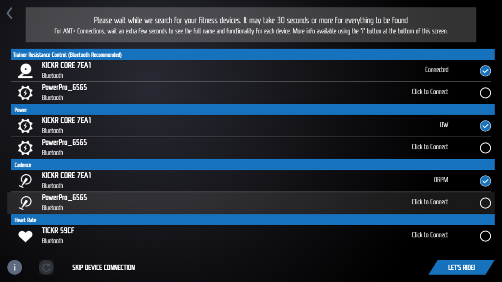 In der App sind alle vier Trainingsprogramme dann mit jeweils mehr als 30 verschiedenen Einheiten und Locations vorhanden. Jedes Programm beginnt mit dem FulGaz FTP Test und baut anschließend darauf auf.