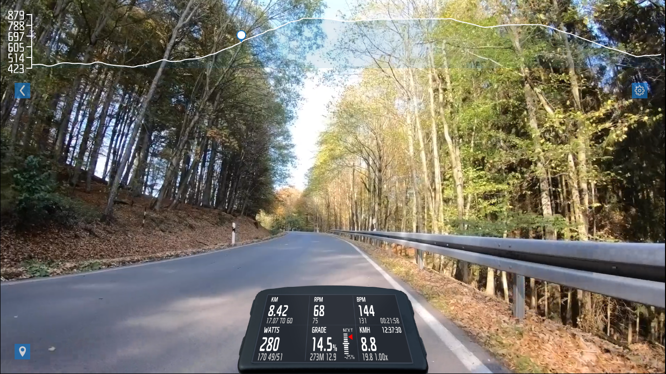 Zu all dem muss man nicht so ganz auf eine Community verzichten. Andere Radsportler können mit einem Code zu einem Groupride oder Rennen eingeladen werden. Auf der Karte wird die Position des Mitfahrers gezeigt.