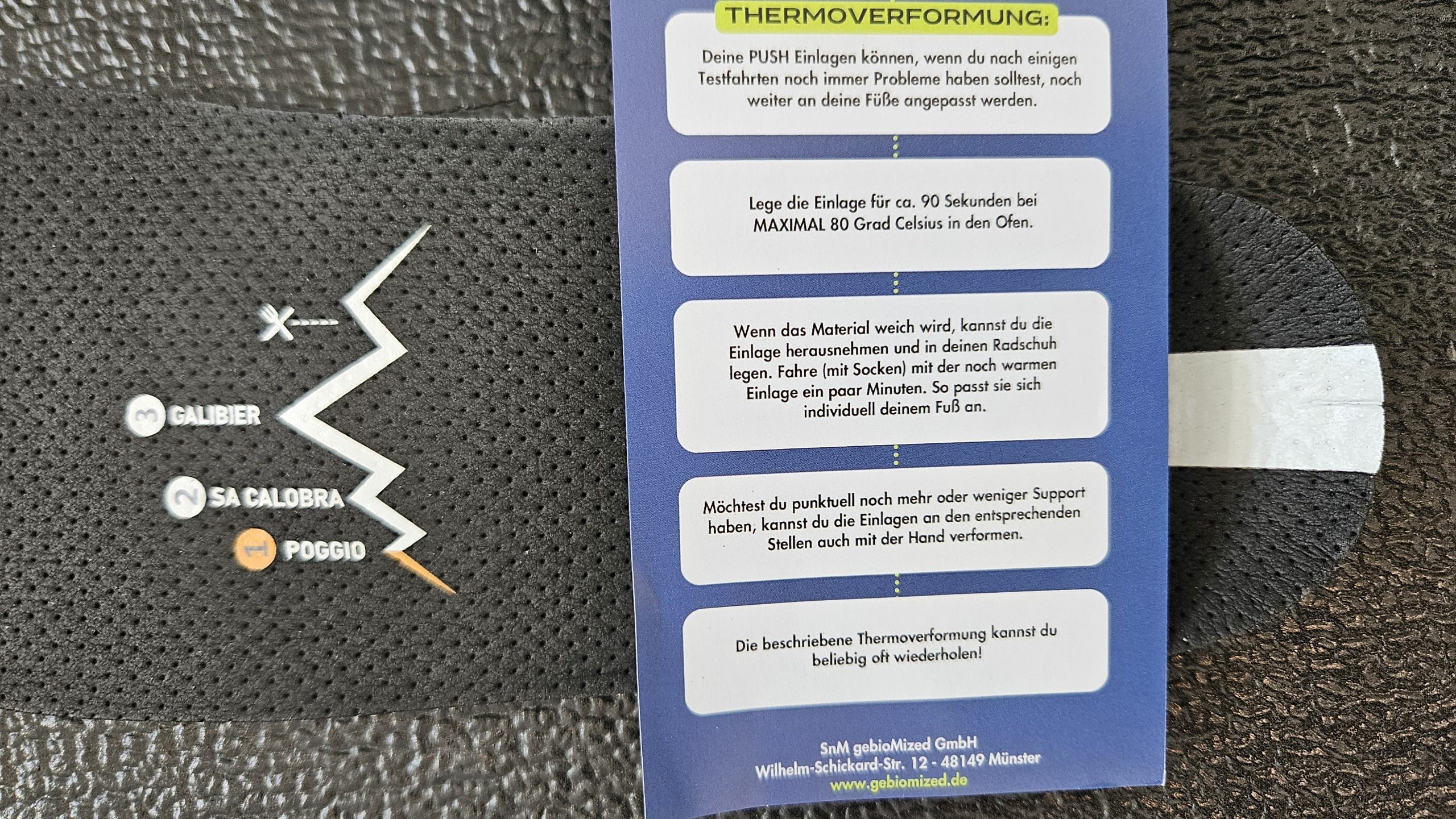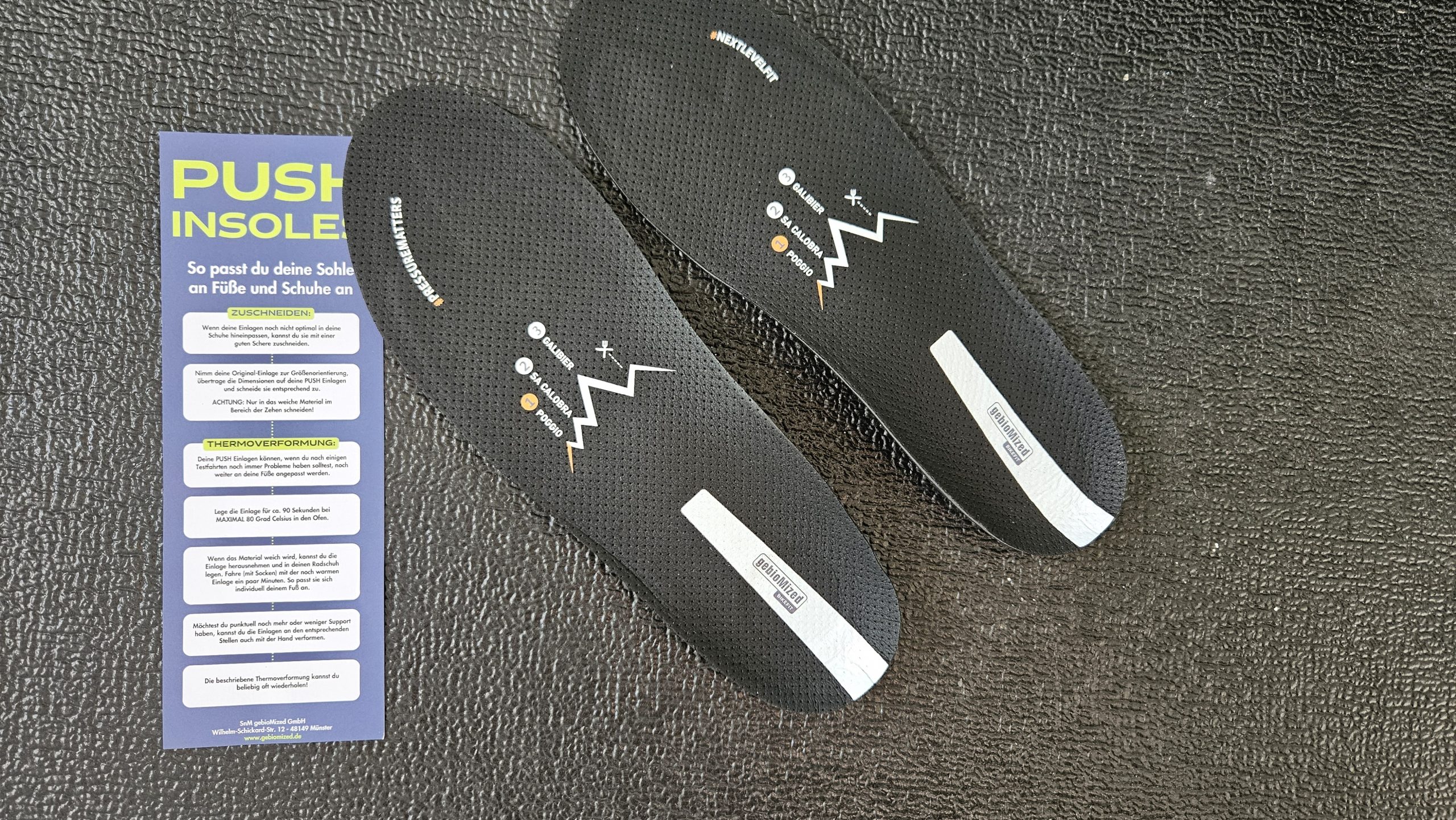 Die mitgelieferten Einlagen in Rennrad- und Gravelschuhen sind meistens nur bessere Pappe und nichts für lange Strecken. GebioMized aus Münster stellt individuell Einlagen für ambitionierte Radsportler und Profis her und hat mit den Push Insoles Sohlen, die wärmeverformbar sind. Sportler können ihre Einlagen so selbst an den eigenen Fuß angepassen.