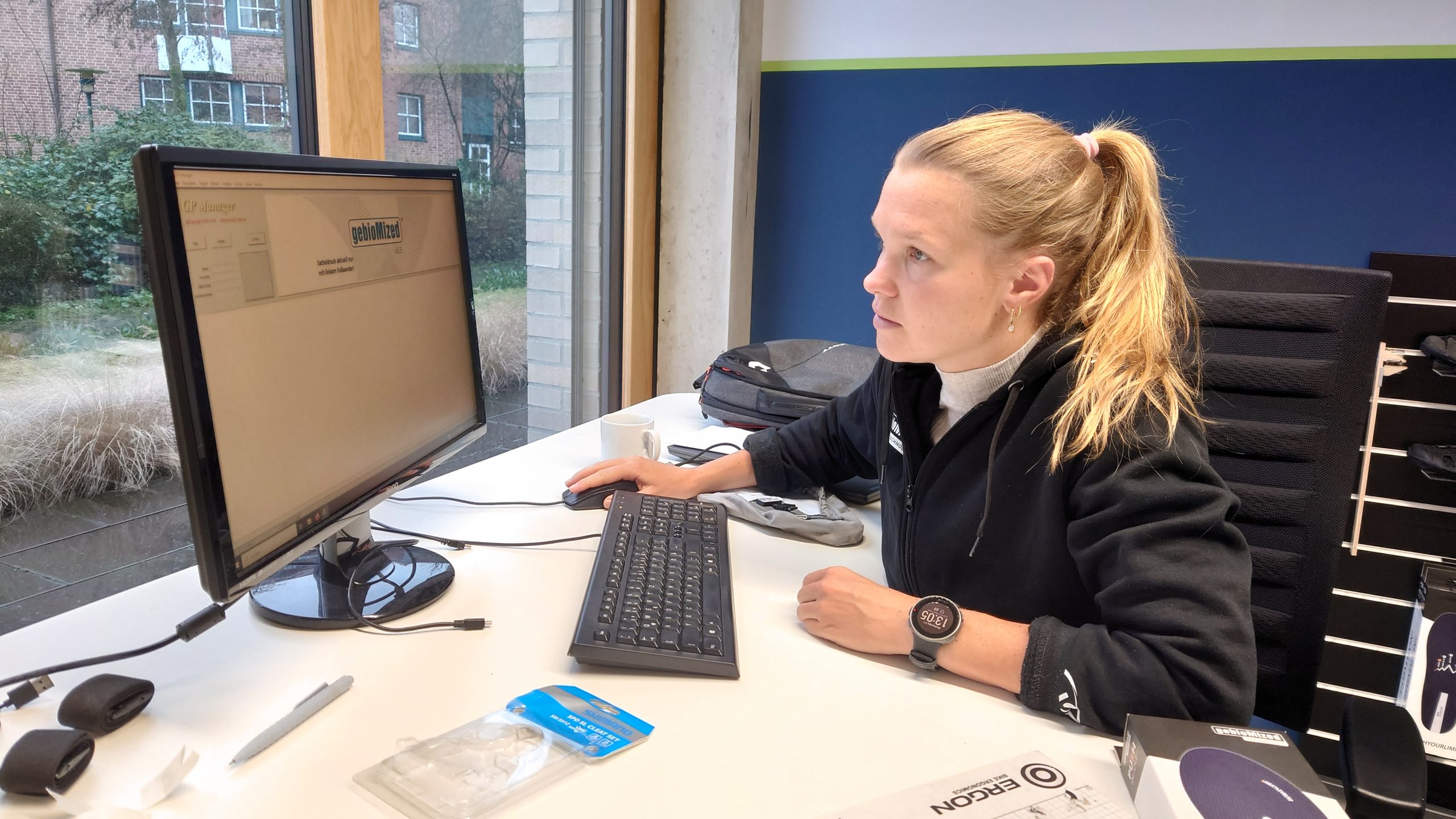 Das Besondere an den GebioMized-Einlagen ist die Basis einer dynamischen Druckmessung. In Münster werden die Hauptbelastungspunkte gemessen, wo der Triathlet während der Fahrt mit zum Beispiel 300 Watt Druck ausübt. Damit werden die Einlagen exakt auf das Druckprofil angepasst. Es entsteht deshalb keine statische, sondern eine dynamische Einlage, die sich an das Bewegungsmuster des Sportlers anpasst. Mit so einer Analyse erkennt GebioMized auch Asymmetrien zwischen linker und rechter Seite und Belastungsunterschiede.