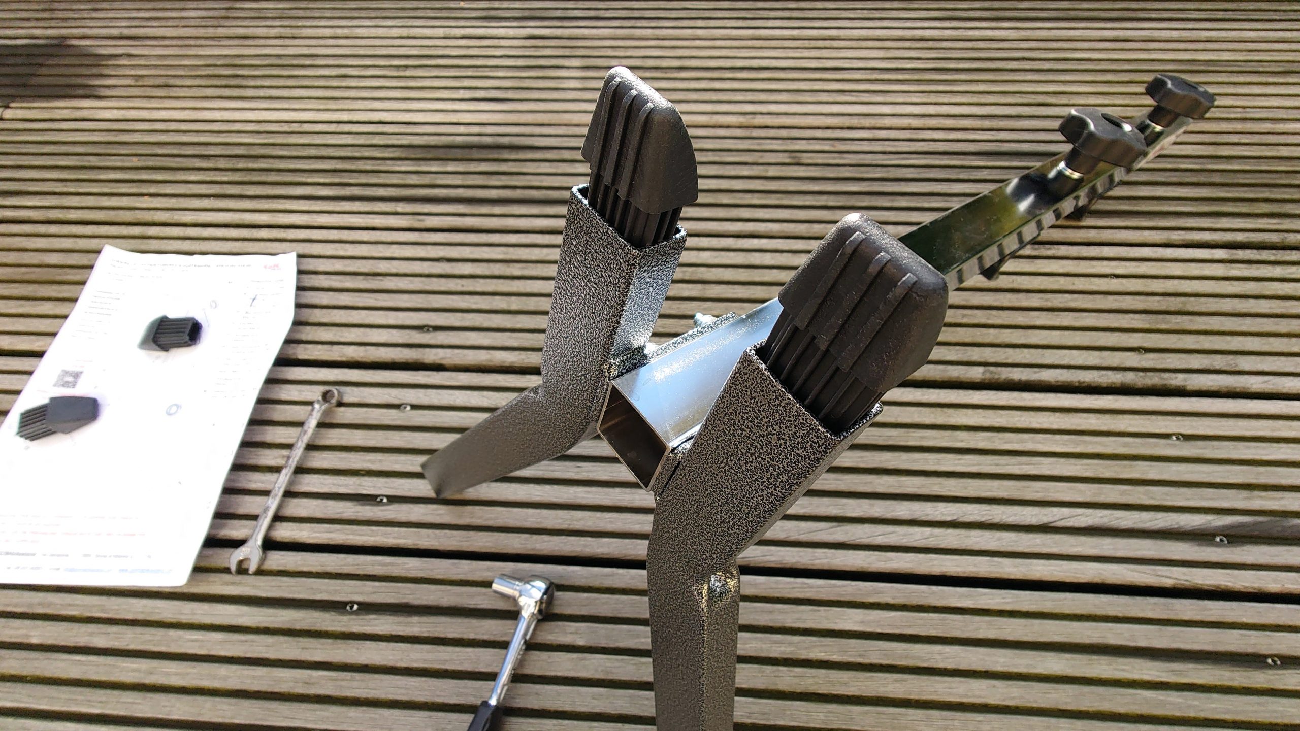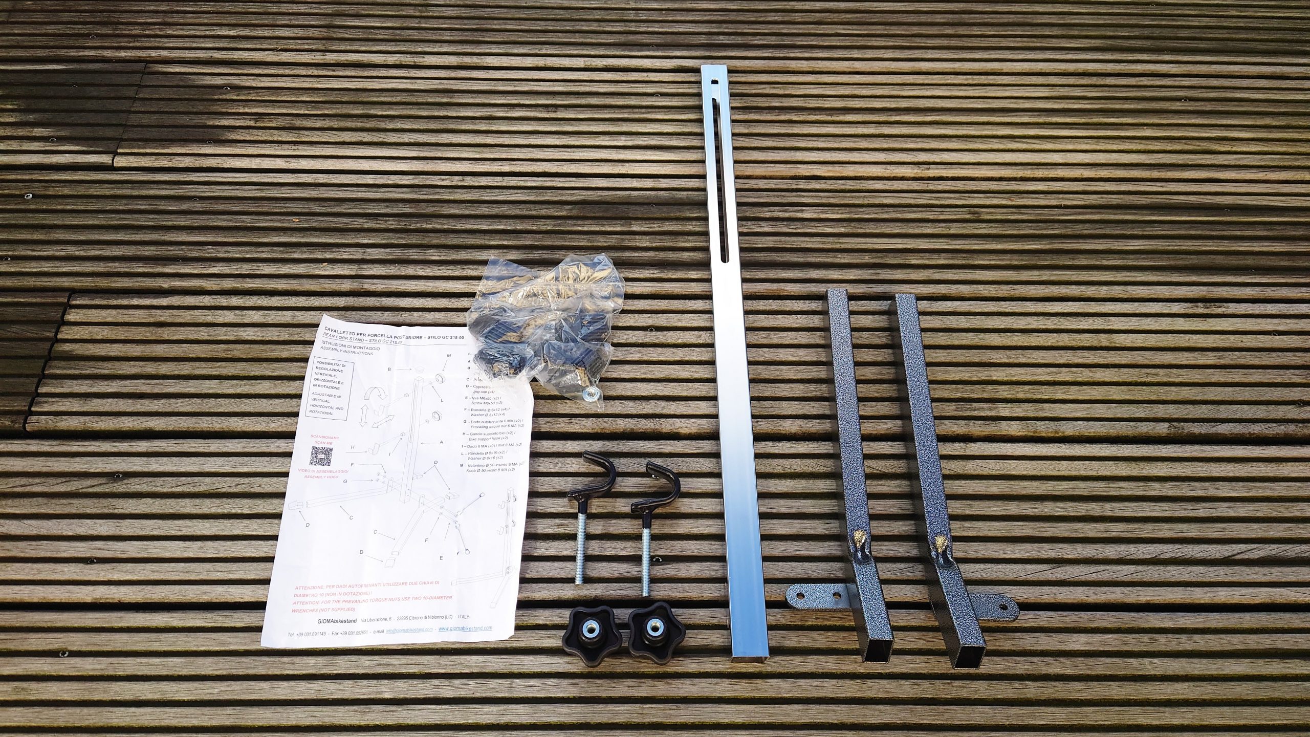 Der Ständer wird in separaten Teilen geliefert, jedoch ist das Zusammenbauen unkompliziert und kann innerhalb weniger Minuten erledigt werden. Es steht auch ein Montagevideo vom Hersteller zur Verfügung.