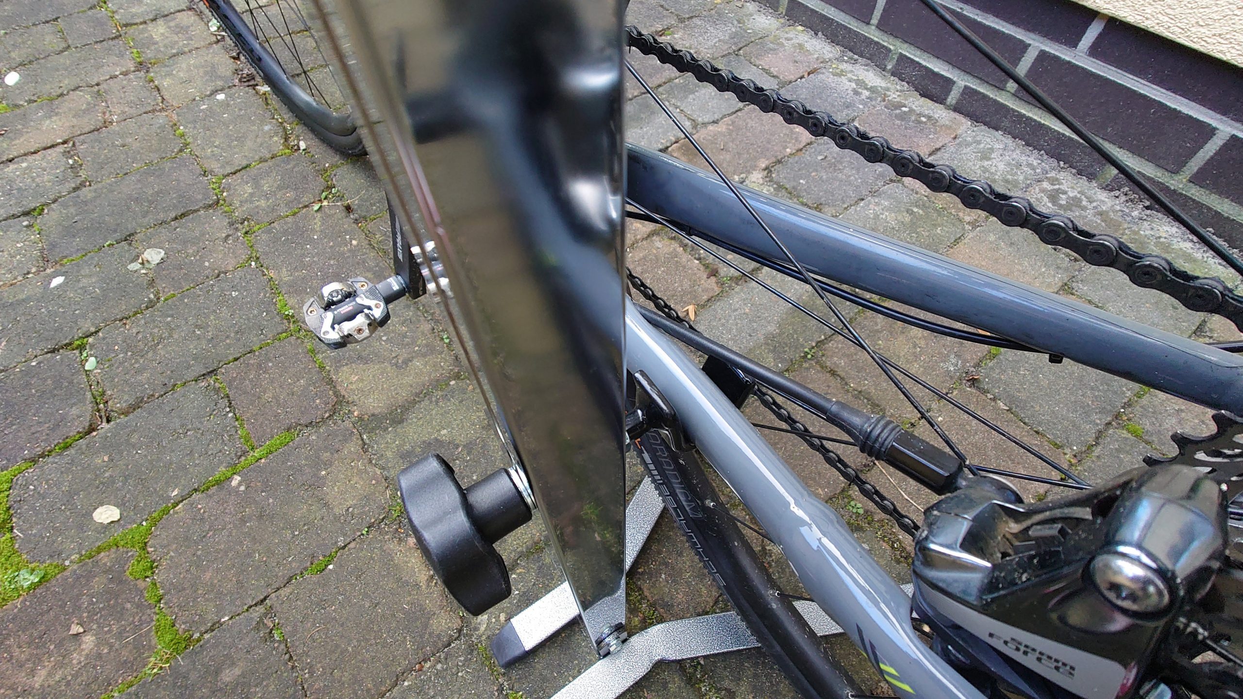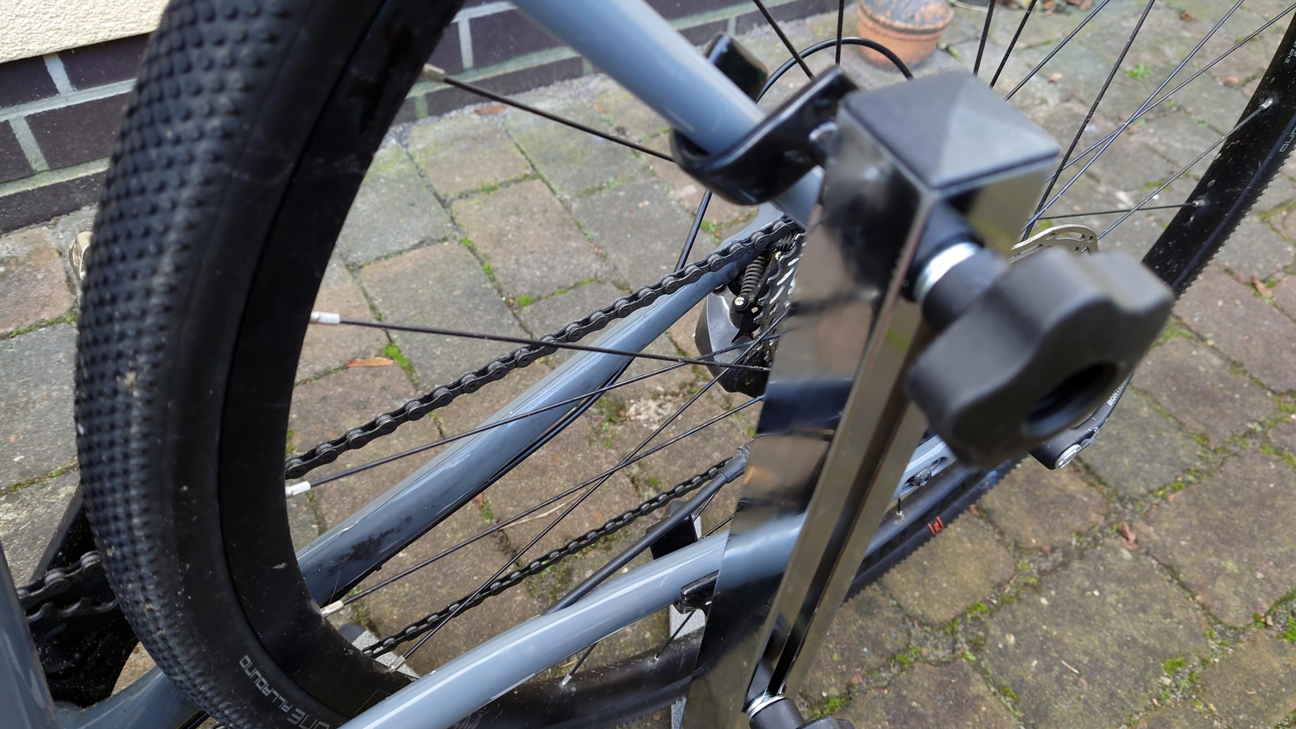 Nicht so empfehlenswert ist es, ein Fahrrad über einen längeren Zeitraum ausschließlich auf so einem Fahrradständern abzustellen, da das Gewicht des Rads von der Unterstrebe und teilweise von der Sattelstrebe getragen wird. Besser ist, dass Rennrad oder Gravel in einen Bodenständer zu stellen. Da ist auch optimale Stabilität gewährleistet.