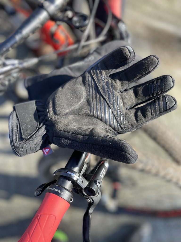 An zwei Wochenenden fuhr ich jeweils 85 Kilometer, bei minus zwei Grad, Wind und Regen, die schönsten Singletrails bergauf und ab. Anliegerkurven, Wurzeln und Bumps sorgten für jede Menge Fahrspaß. Meine Finger waren dank der PrimaLoft Gold-Isolierung, aus 100 % Recycling-Material, zu keiner Sekunde kalt und vom ersten anprobieren an war ich begeistert. Das innen liegende Fleecefutter ist super weich und wärmend. Trotz der wärmenden Isolationsschicht, sind Tätigkeiten wie Gel/Riegel aufreißen kein Problem.