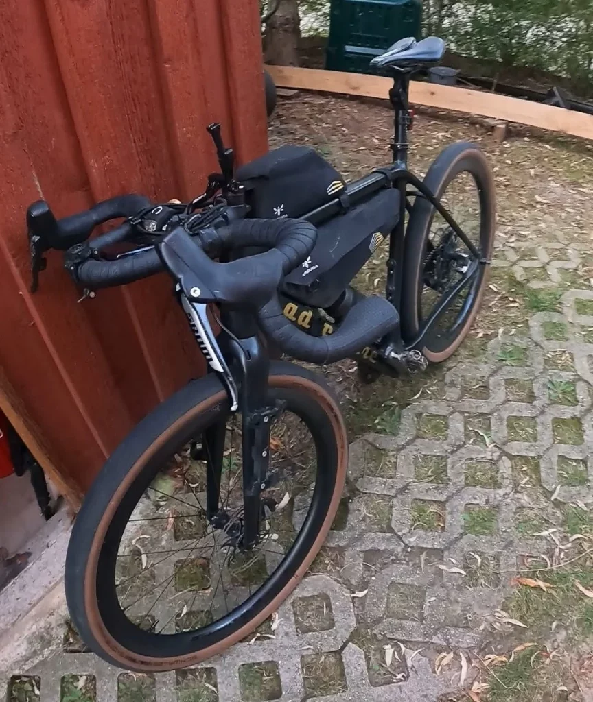 Ein Gravelbike. Kernstück des Custombuilds ist ein direktimportierter OEM-Rahmen aus dem chinesischen Hause Carbonda. Die Geo ist graveltypisch relaxed mit einem Stack-to-Reach Verhältnis von 1,51 aber es ist ein Dropbarbike und daher schnell.