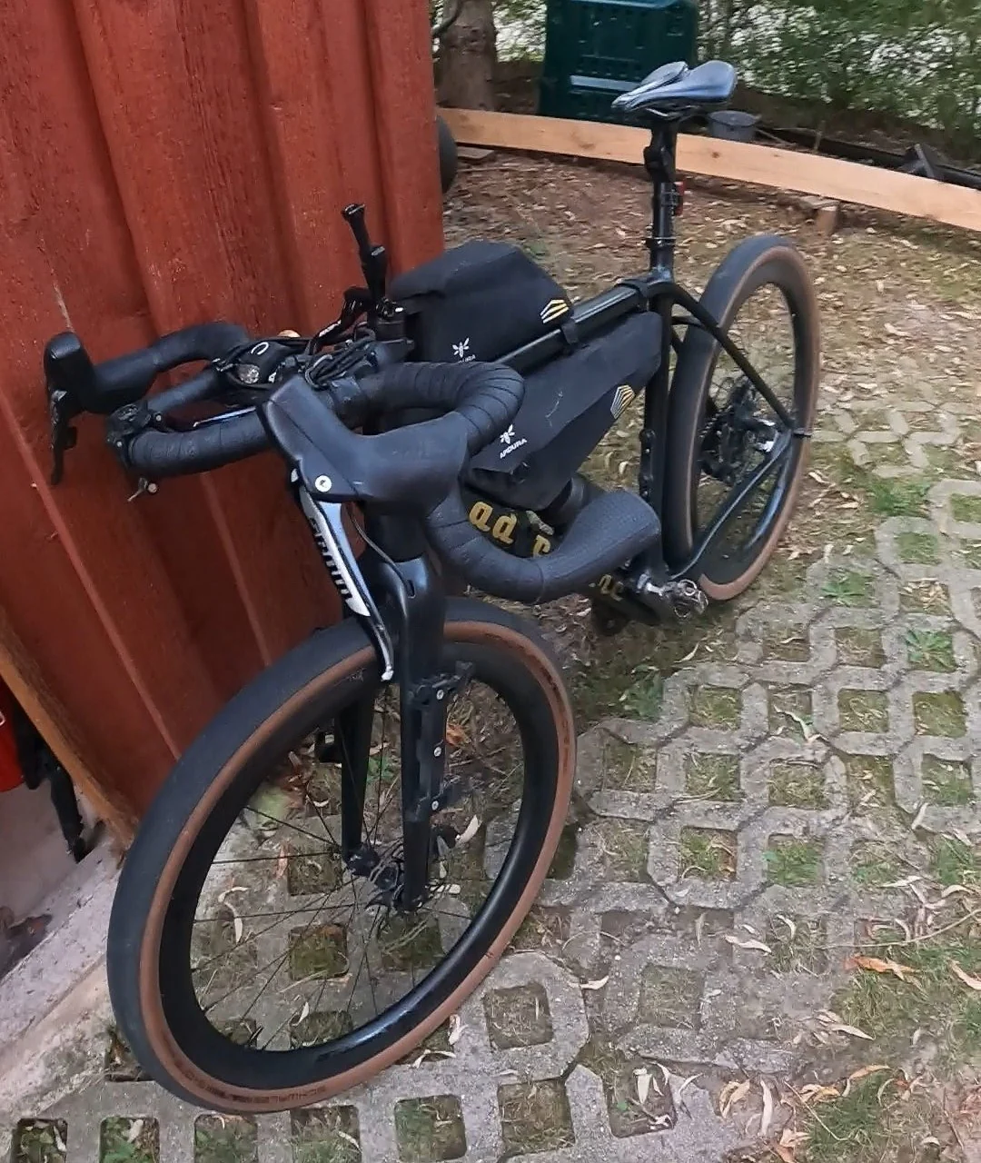 Ein Gravelbike. Kernstück des Custombuilds ist ein direktimportierter OEM-Rahmen aus dem chinesischen Hause Carbonda. Die Geo ist graveltypisch relaxed mit einem Stack-to-Reach Verhältnis von 1,51 aber es ist ein Dropbarbike und daher schnell.