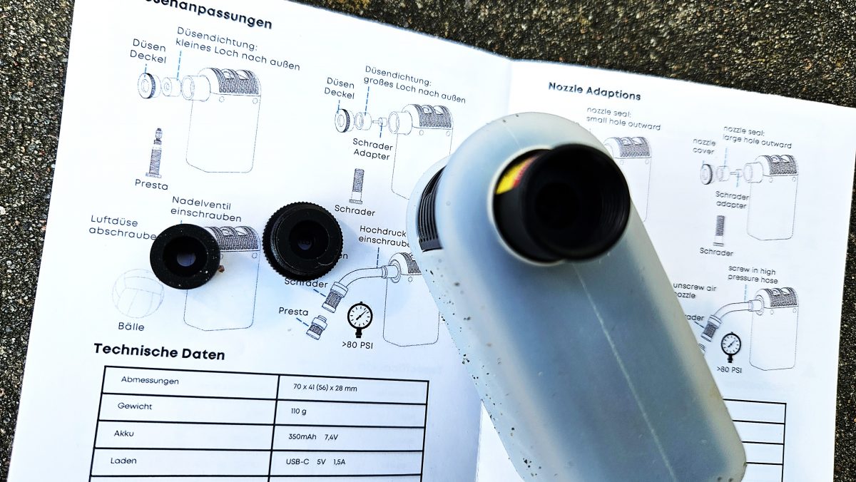 Die Verarbeitung wirkt hochwertig, der Ventilaufsatz sieht robust aus und das Aufladen des Akkus dauert wie angegeben, weniger als 30 Minuten. Während des Test haben wir drei Mal einen platten Reifen inszeniert. Der Akku macht mit und war selbst danach noch nicht leer. Beim ersten Versuch ist das Geräusch vom kleinen Kompressor noch ungewohnt. Ich würde die Lautstärke mit der von einem Smoothie-Mixer vergleichen. Die Wärmeentwicklung ist dabei okay.