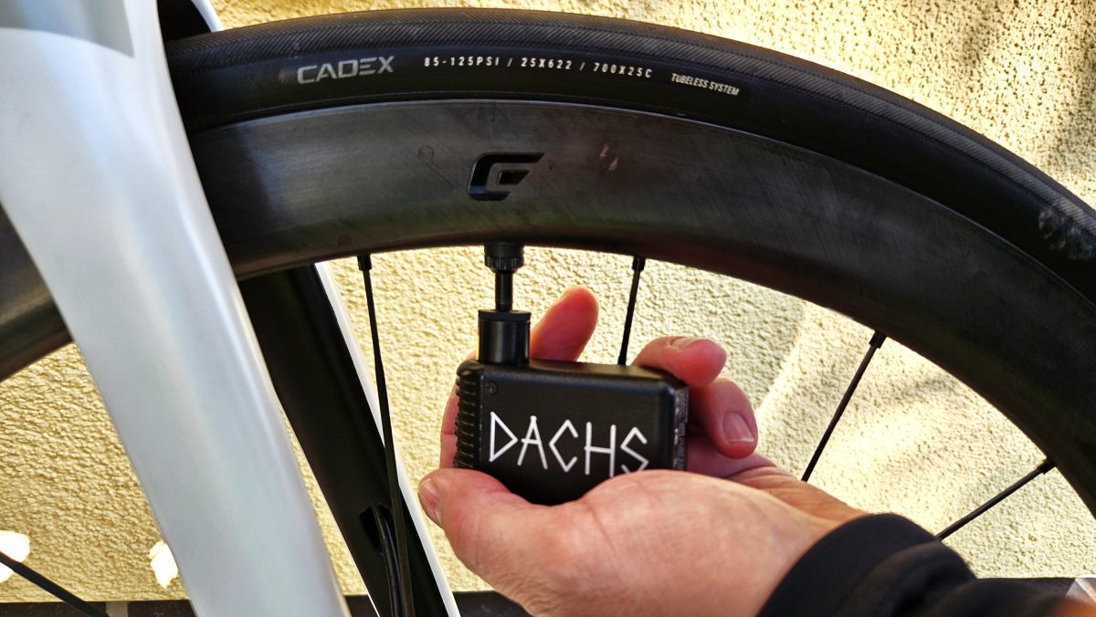 In der Praxis zeigte sich, dass die Dachs E-Pumpe zuverlässig und unkompliziert im Gebrauch ist. Sie brauchte 47 Sekunde, um einen platten 700×25 Rennradreifen auf circa 5 Bar aufzupumpen. Damit eignet sie sich hervorragend auf Touren, bei Events und auf dem Weg zur Arbeit, bei letzterem mit dickeren Reifen macht es Sinn, den kleinen Verlängerungsschlauch einzupacken.
