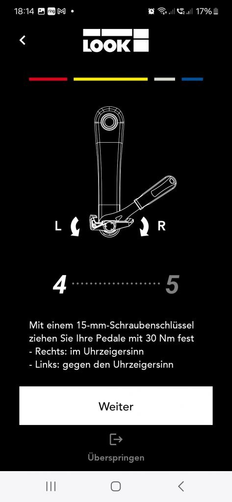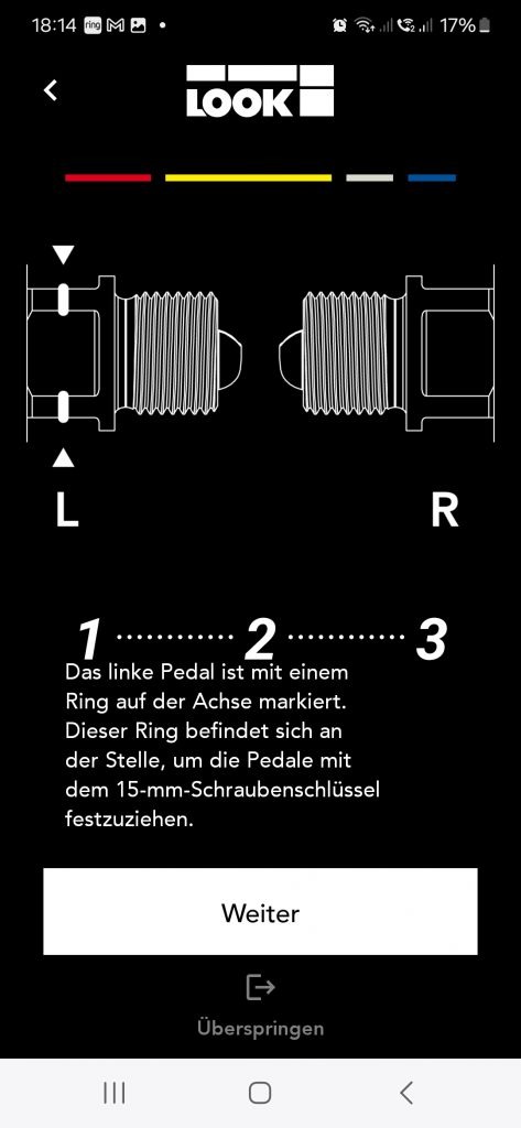 Für die Einstellungen der Pedale kommt eine App von Look zum Einsatz. Die gibt es für iPhone und Android. Der Sportler wird durch die Montage und Erstkonfiguration geführt. Für den Alltag ist die App zwar nicht unbedingt notwendig, sie zeigt aber Informationen, die am Garmin oder Wahoo Radcomputer nicht zu sehen sind. Nerds bekommen in der App mehr Live-Daten. Insgesamt ist die App gut gemacht und Look verzichtet auf so ein halbgares Garmin-Connect-Derivat für das Tracken von sportlichen Aktivitäten, welches sowieso niemand nutzt.
