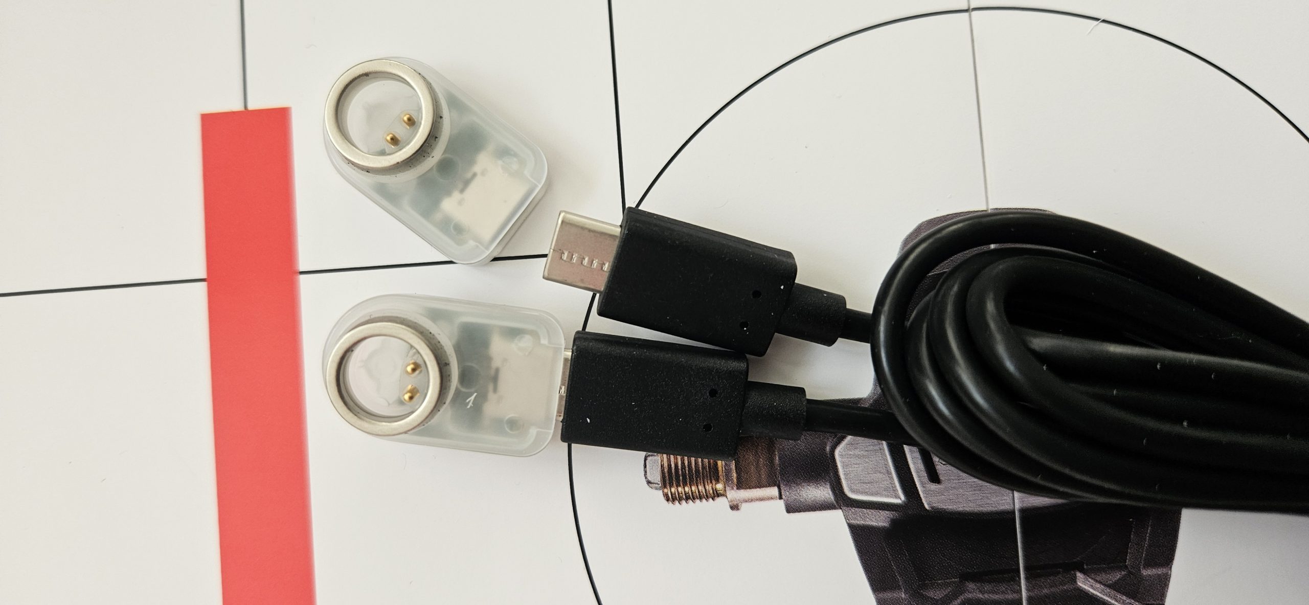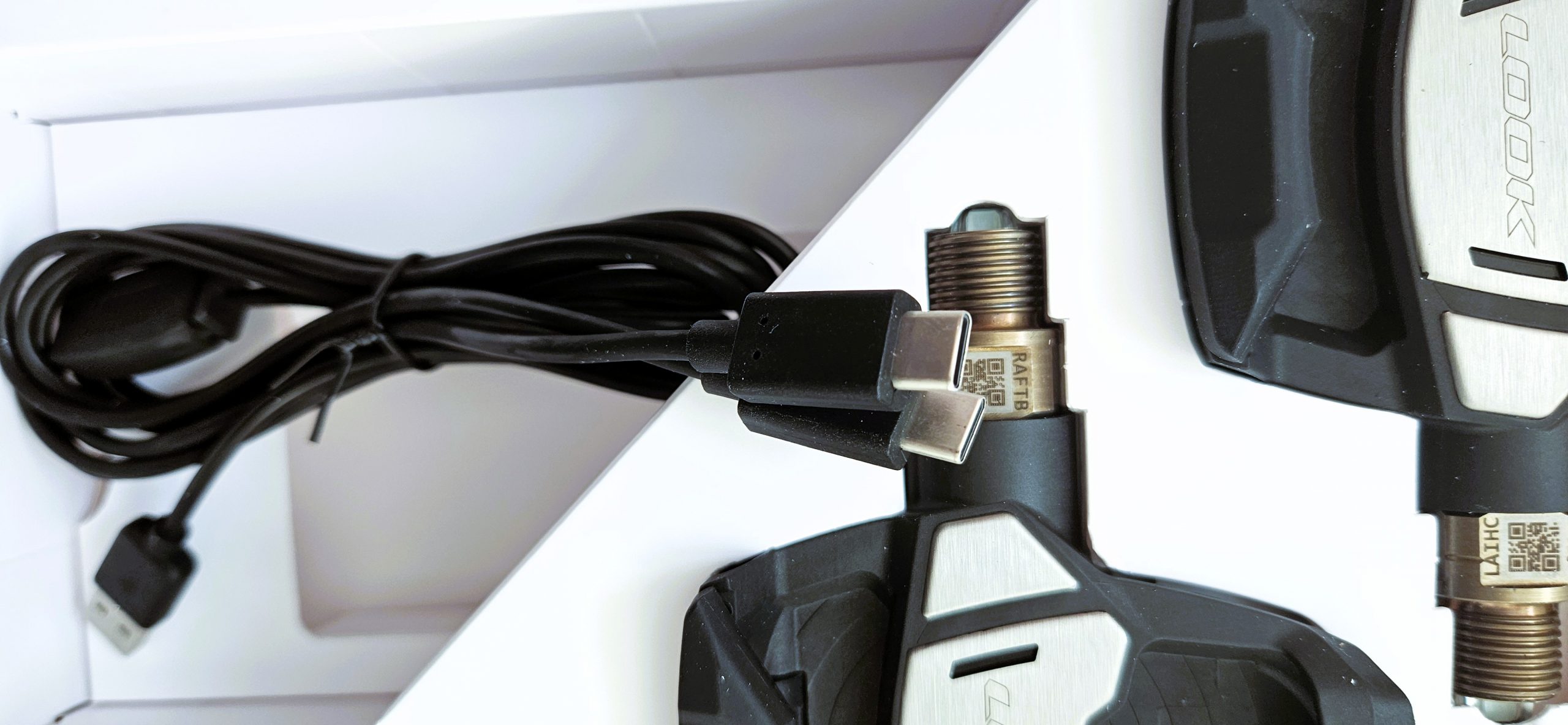 Für die Montage wird ein 15er-Maulschlüssel benötigt. Weil die Sender in den Achsen verbaut sind, geht mit dem klassischem Inbus bei den Keo Pedalen gar nichts. Zum Aufladen der Pedale liegen ein Ladekabel und zwei kleine Adapter in der Schachtel. Die kleinen magnetischen Stecker sind notwendig, weil ein USB-C-Stecker allein nicht wasserdicht ist. Alles kann bei Look einzeln einzeln nachbestellt werden, falls mal was abhanden kommt.