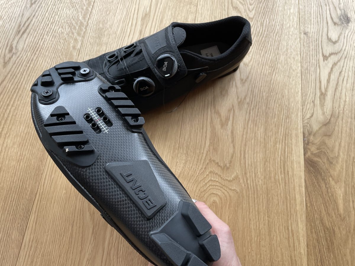 Obwohl das Cleats weit hinten platziert ist (was den Schuh nach vorne bringt), habe ich zu keinem Zeitpunkt Toe-Overlapping mit dem Vorderrad an meinem Gravelbike. Die einfacheren, unidirektionalen Boa L6 Verschlüsse beim Riot G haben beim Fahren für mich keinen Nachteil. In der Regel stelle ich den Schuh nach etwas fahren eher fester, denn lockerer.