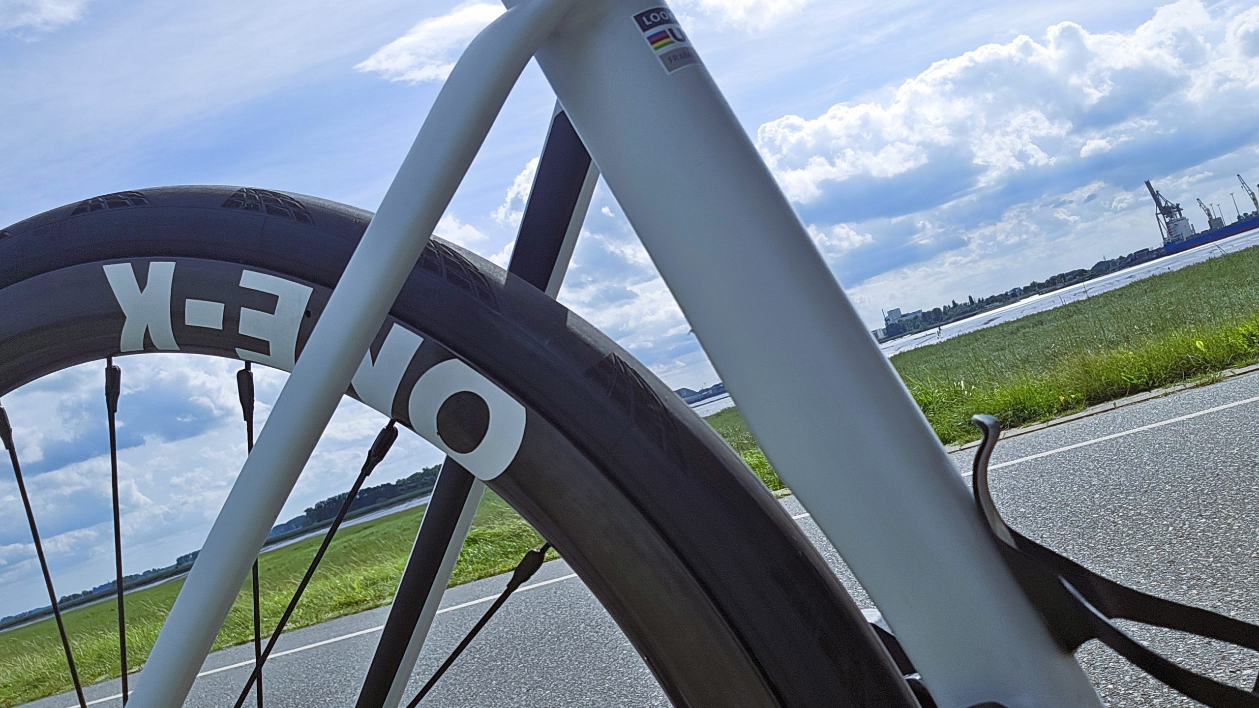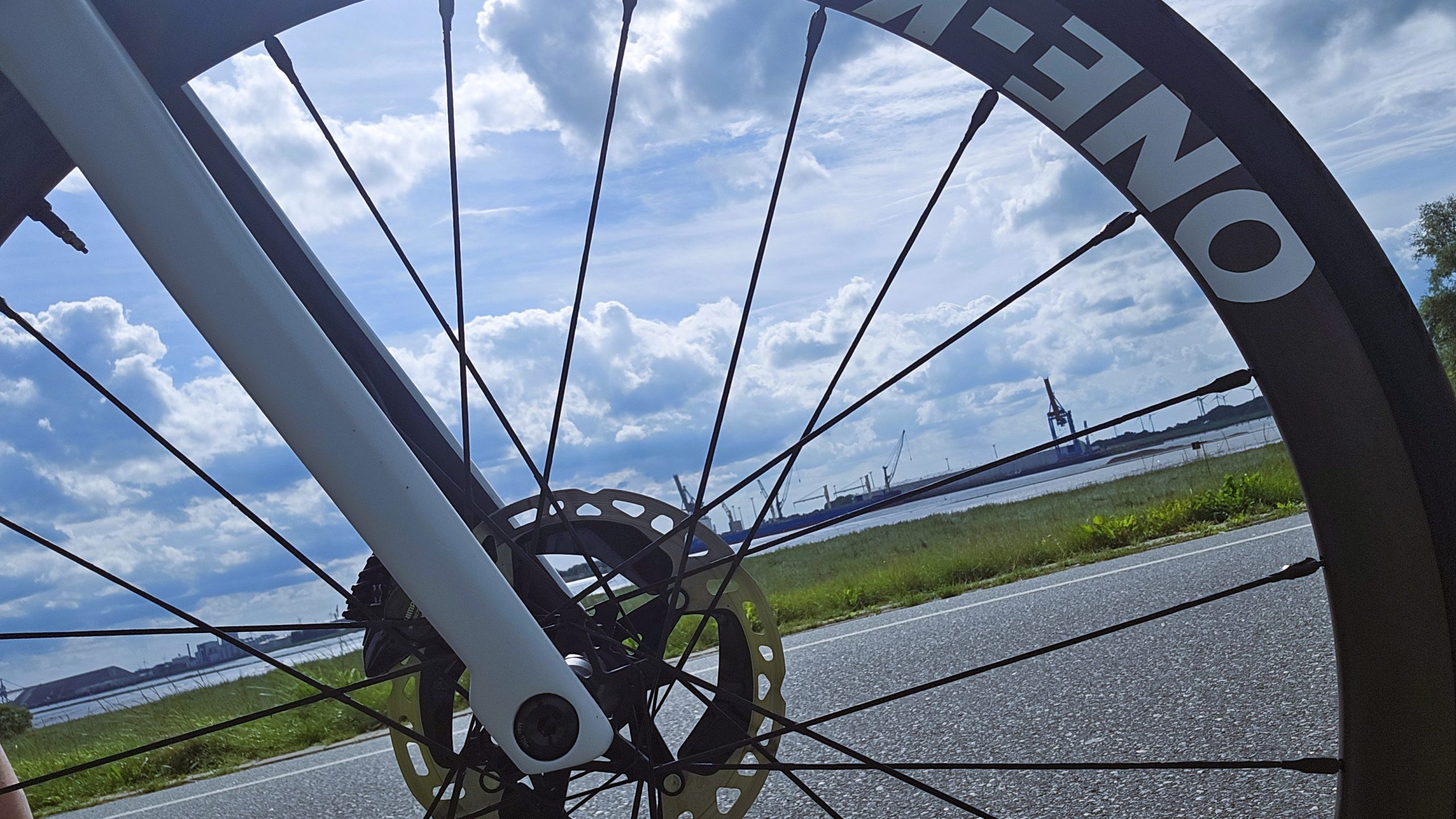 Die Conti-Reifen ließen sich problemlos aufziehen, was für die Genauigkeit des Umfangs der Laufräder spricht. Fahrkomfort und Dämpfung sind keine Themen, auf die ich hier Rennradfahren wert gelegt habe. Wahrscheinlich würde ein KI-Text schreiben, dass die One-K Speichen kleinere Unebenheiten und Vibrationen wegfiltern. Dem ist natürlich nicht so und das widerspricht auch Vortrieb und Steifigkeit.