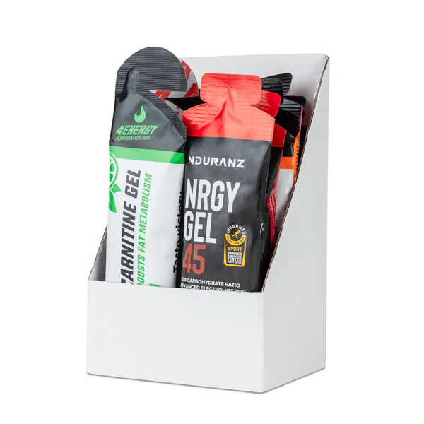 Die Energiegels, zum Beispiel das Nrgy Gel 45, liefern pro Portion 45 g Kohlenhydrate in einem wissenschaftlich abgestimmten Verhältnis von Glukose zu Fruktose (1:0,8) und enthalten eine fortschrittliche Elektrolytmischung, die exakt das ersetzt, was beim Schwitzen verloren geht. Das ermöglicht eine hohe Energiezufuhr von bis zu 90 g Kohlenhydraten pro Stunde, ohne dass Magenprobleme zu erwarten sind. Die Gels lassen sich auch bei hoher Belastung gut konsumieren. Die Verpackung ist robust, aber leicht zu öffnen und tropft nicht