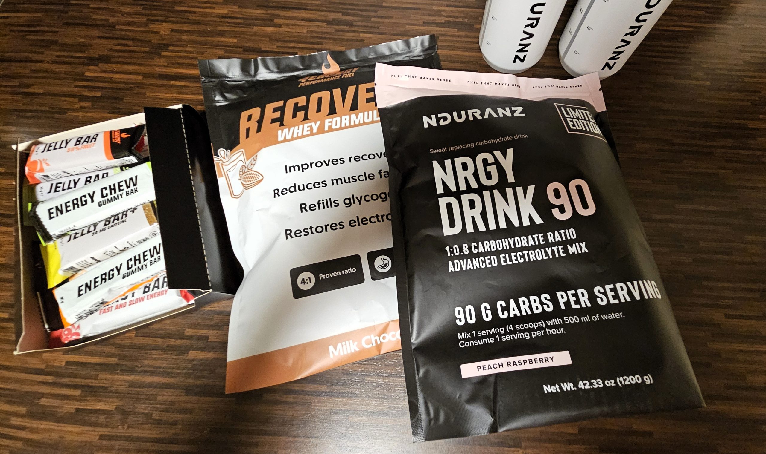 5 bzw. 90 g Kohlenhydrate liefern die isotonischen Sportgetränke Nrgy Drink 45 oder 90; sie sind ebenfalls mit Elektrolyten angereichert. So eignen sie sich besonders für längere Einheiten, bei denen sowohl Energie als auch Flüssigkeit kontinuierlich nachgeführt werden müssen. Wichtig ist bei Trinkpulver die Löslichkeit.
