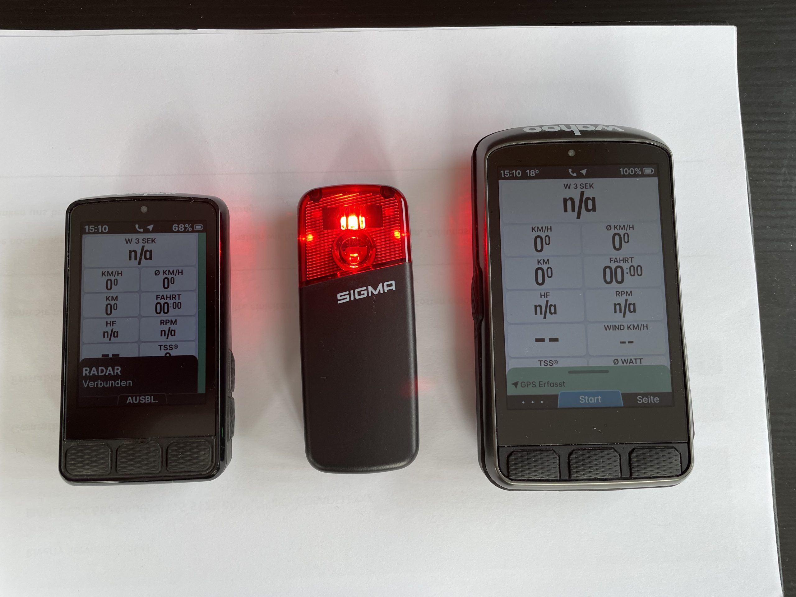 | Wahoo Trackr Radar | Lezyne Radar | Garmin Varia RTL516 | Garmin Varia RearVue 820 | Sigma Reco 80 Link | |