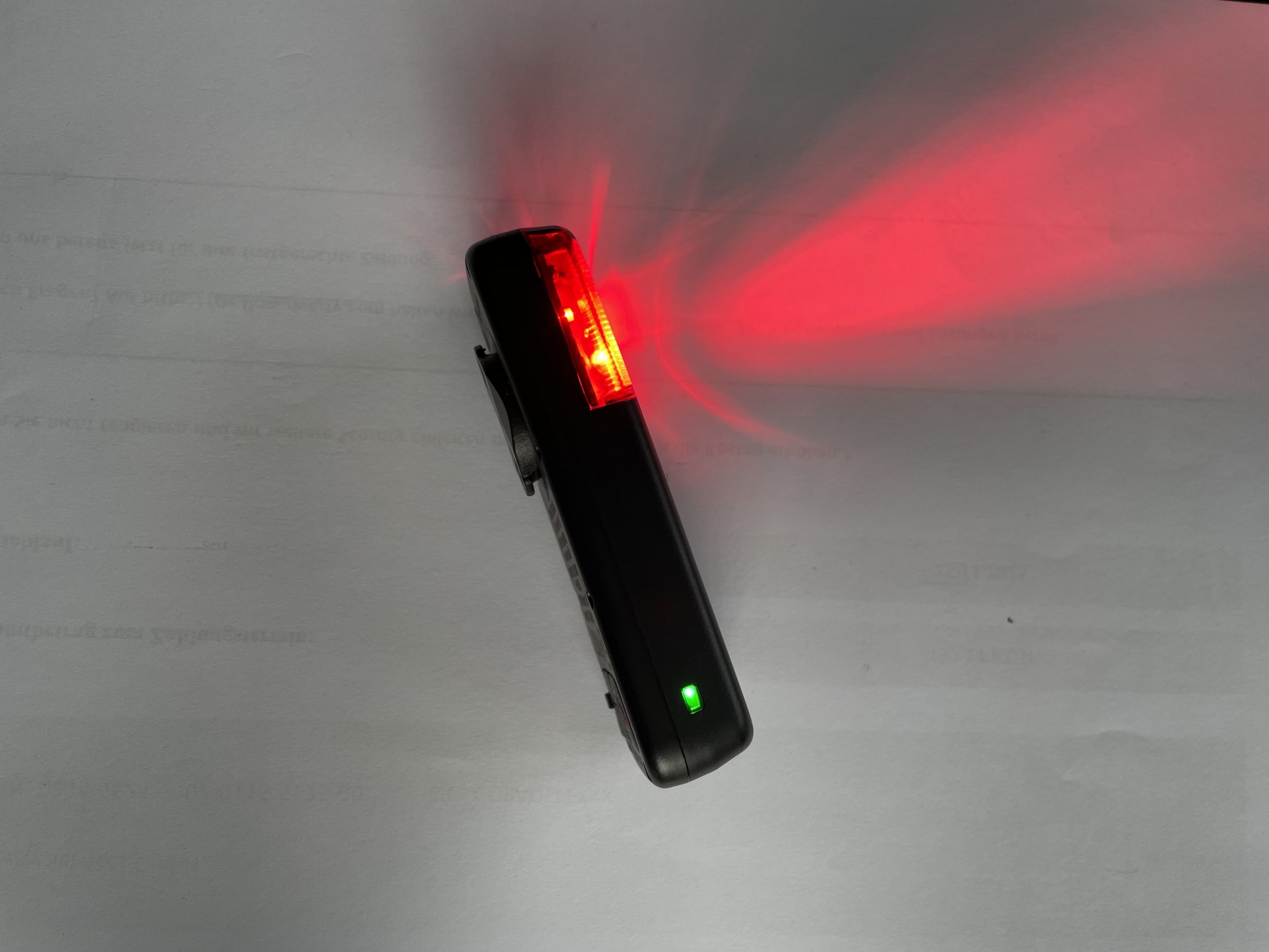 Hier zeigt sich die erste Stärke des Sigma Reco 80 Link Radarlichts: Die Bedienung ist genauso einfach wie angenehm. Ein Doppelklick schaltet es ein. Es leuchtet rot über drei LEDs mit guter seitlicher Sichtbarkeit. Ein weiterer Klick auf den Powerbutton schaltet das Rücklicht aus (nur Radar Funktion). Immer aktiv bleibt die mittlere, 4. LED: das sehr starke Brems- und Warnlicht. Ein weiterer Tastendruck schaltet das Rücklicht wieder ein. Ein Longpress schaltet den Reco 80 Link aus. Sehr einfach und intuitiv. Punkt für Sigma.