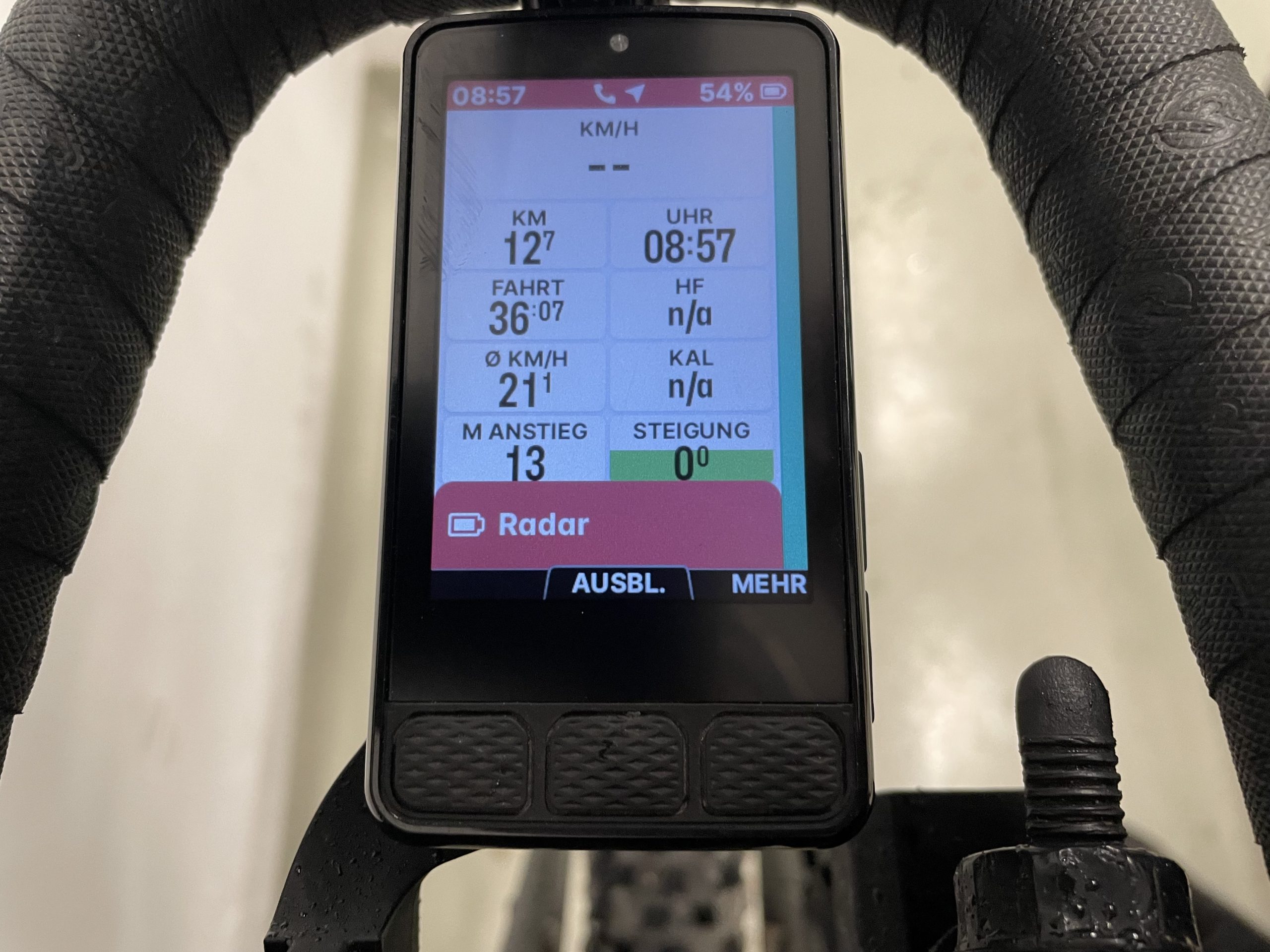 Aufholdene Radfahrer werden ebenfalls sehr gut angezeigt, obwohl es hier in selteneren Einzelfällen nicht klappt. Andere Radfahrer sind ähnlich wie Mottoräder und sollten also auch angezeigt werden. Auf etwas schmaleren Radwegen ist das hilfreich und in einem Radrennen kann esdurchaus gut zu wissen sein, würde ich als Ausreiser von einer Verfolgertruppe eingeholt.